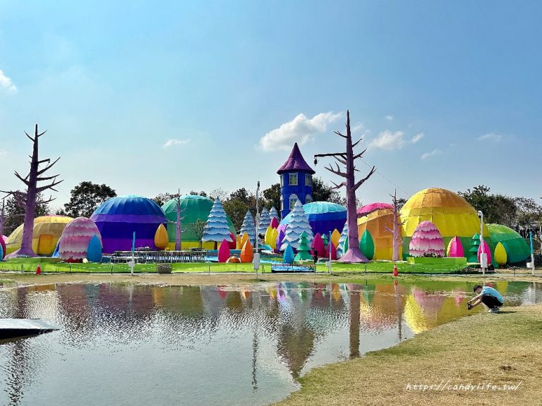 台中又要有新地標了!彩色城堡、奇幻森林,還有水上的絕美倒影,重點是「免費參觀」!最近路過台中這區發現不僅出現了水池,旁邊竟然還悄悄出現了一座座彩虹色調的圓頂小城堡!搭配後方的枯樹造景,倒映在水面上真的夢幻到不行,隨便拍都像置身北歐童話森林,這麼夢幻的森林城堡造景就藏身在台中中央公園中