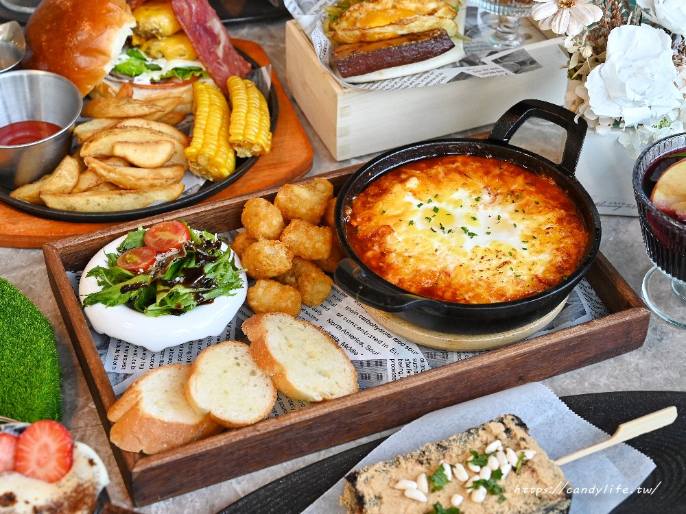 這道剛上桌就香氣四溢的夏卡北非蛋,是店內近期點閱率極高的新品之一。主廚在鐵鍋中鋪上厚厚一層誠意十足的自製肉醬作為基底,中間打入兩顆半熟雙蛋,並撒上滿滿的乳酪絲焗烤至金黃誘人