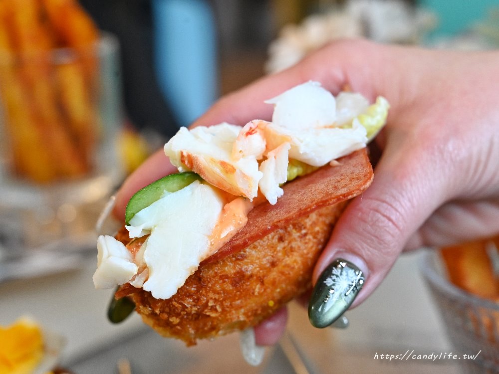 龍蝦口味:這款絕對是升級版的奢華享受!內餡夾入鮮甜龍蝦肉,搭配特製醬料與黃瓜提味,鮮美的海味與麵包香氣交織,讓人忍不住想多咬幾口