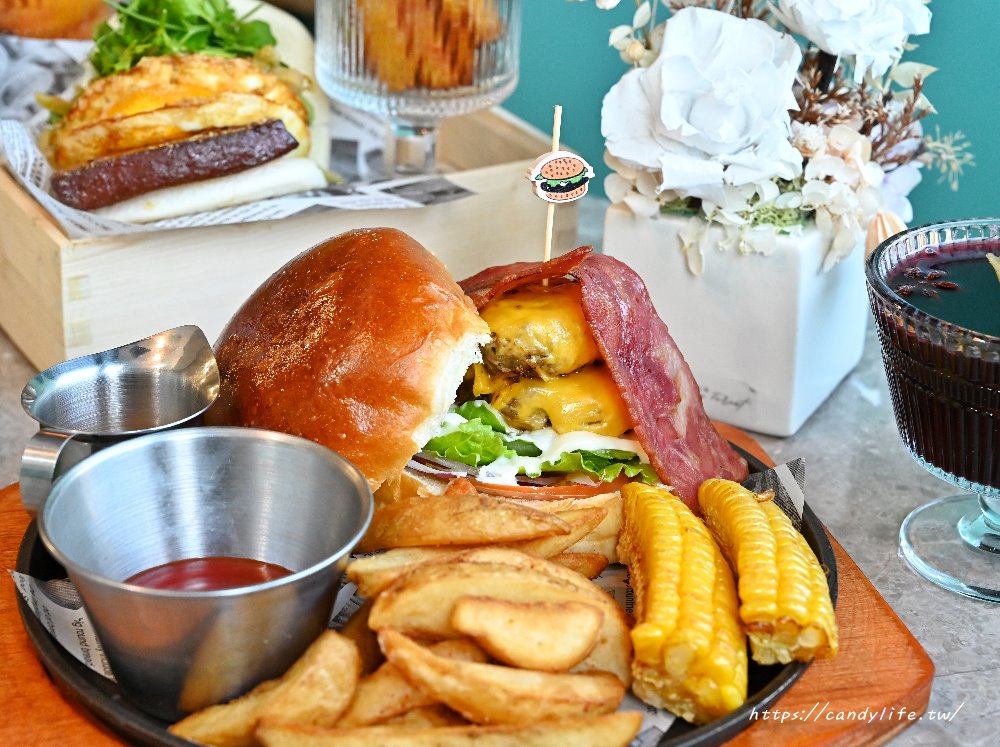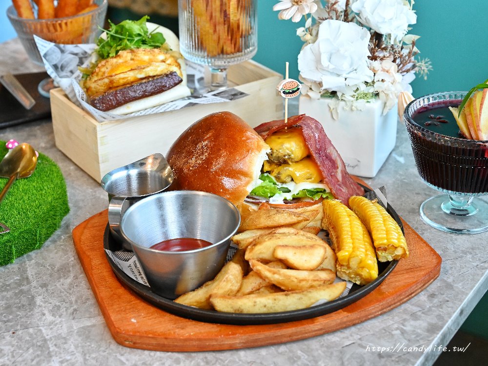 隨餐附上滿滿的現炸帶皮薯條、清甜的烤玉米,擺盤豐富到快要溢出木托盤。大口咬下,牛肉的噴汁感與花生醬的濃郁在口中完美融合,培根的焦香則畫龍點睛地提升了整體層次,每一口都是極致的罪惡與滿足