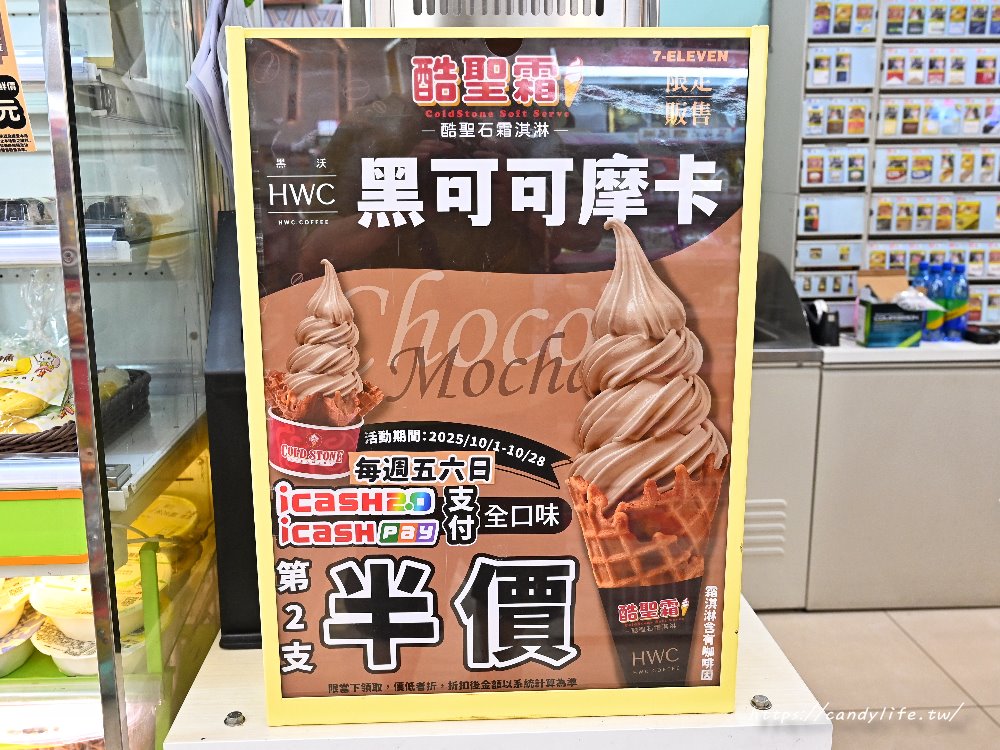 711最新口味的霜淇淋蛋黃酥口味大家吃過了嗎~聽說吃完真的有過中秋的感覺,不過除了蛋黃酥霜淇淋,其實還有另一個口味黑可可摩卡,不過只有711限定門市(有酷聖石霜淇淋的門市才有販售),於10/28前每週五、六、日憑icash2.0或icash PAY支付,享第二件半價