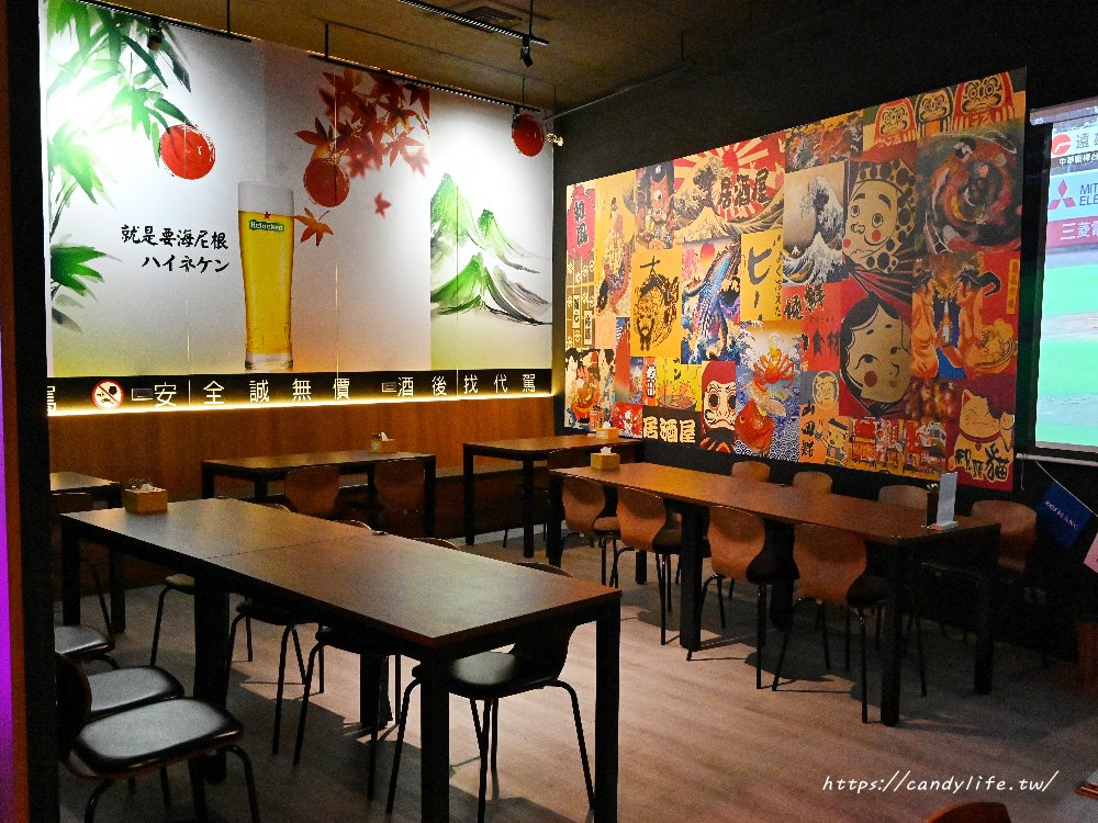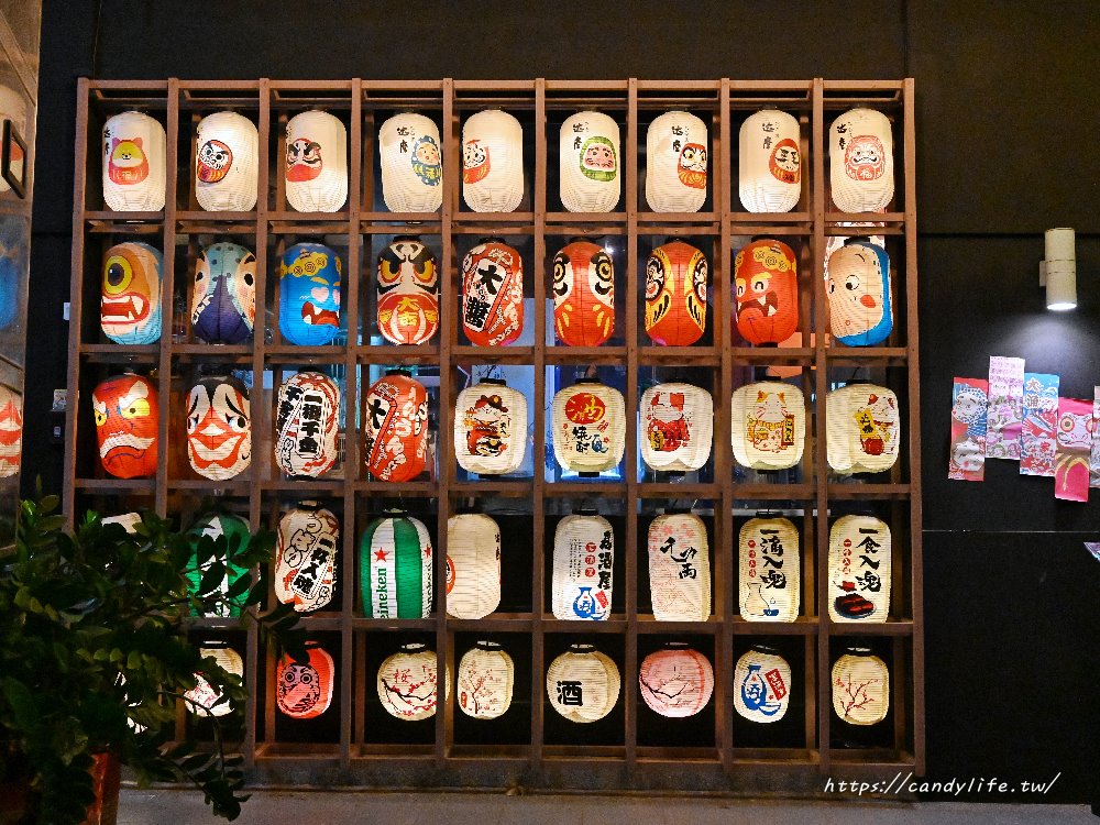 另外門口處還設有超吸睛的打卡裝置,整面以木框結構打造的燈籠牆,擺滿各式各樣繽紛的日系燈籠與達摩圖案,色彩鮮豔又充滿節慶氛圍,是不少人來用餐前必拍的熱門打卡點,不論白天或夜晚,都能拍出濃濃日系感的照片,替整體空間增添了滿滿的趣味與活力