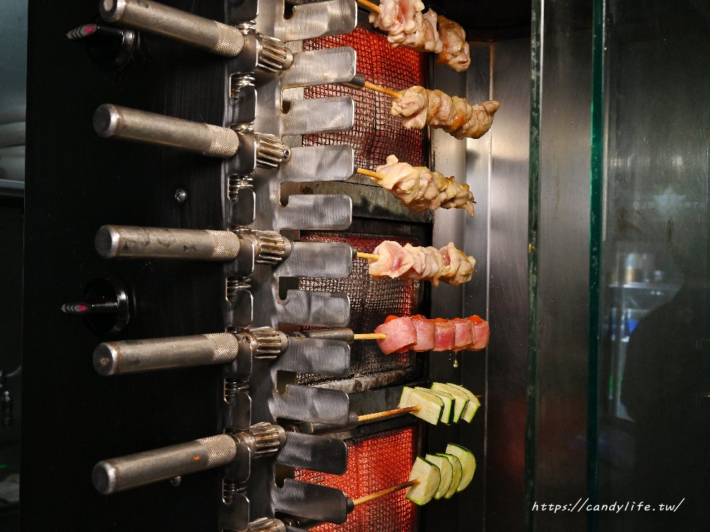 大醬無煙燒烤東區店的串燒是採用直立式烤爐,溫度均勻,烤的速度也非常快,等到表面烤得金黃上色,再刷上特製醬汁,香氣更加濃郁誘人