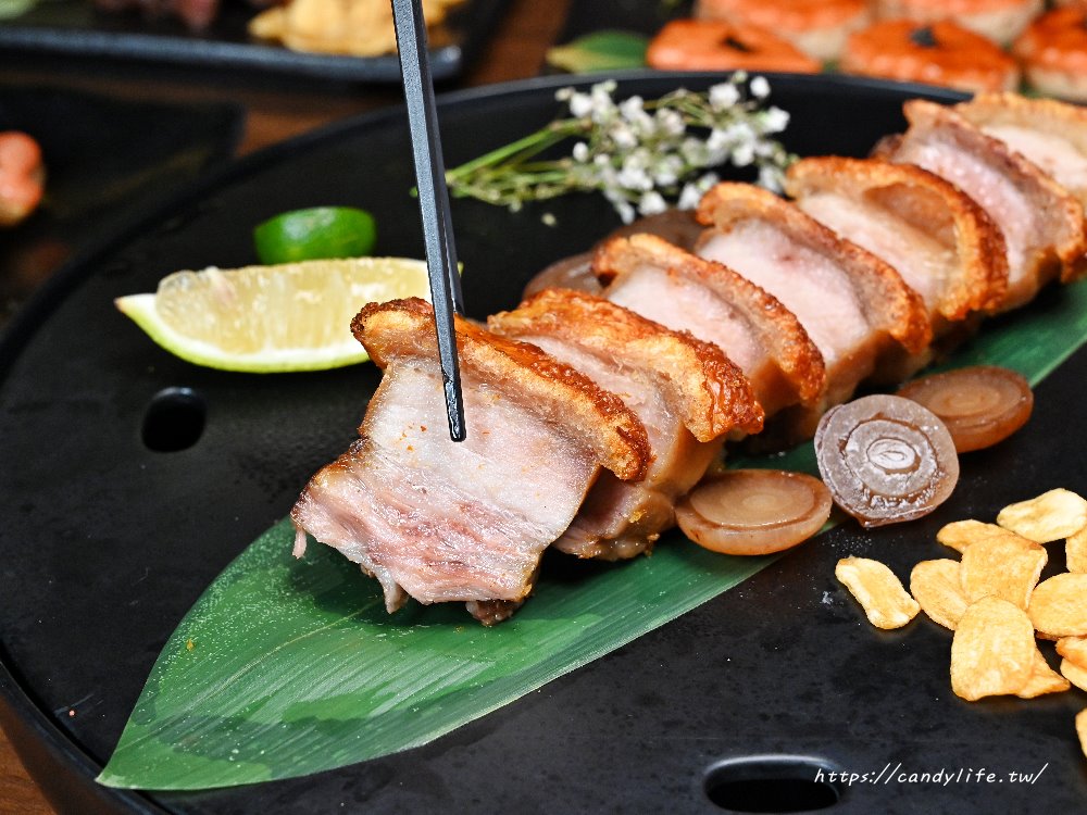 糖糖大推這道脆皮豬五花!外皮烤得金黃酥脆,入口瞬間發出迷人卡滋聲,裡層肉質軟嫩多汁,油香四溢,不需任何佐料就十分入味,絕對是下酒菜首選