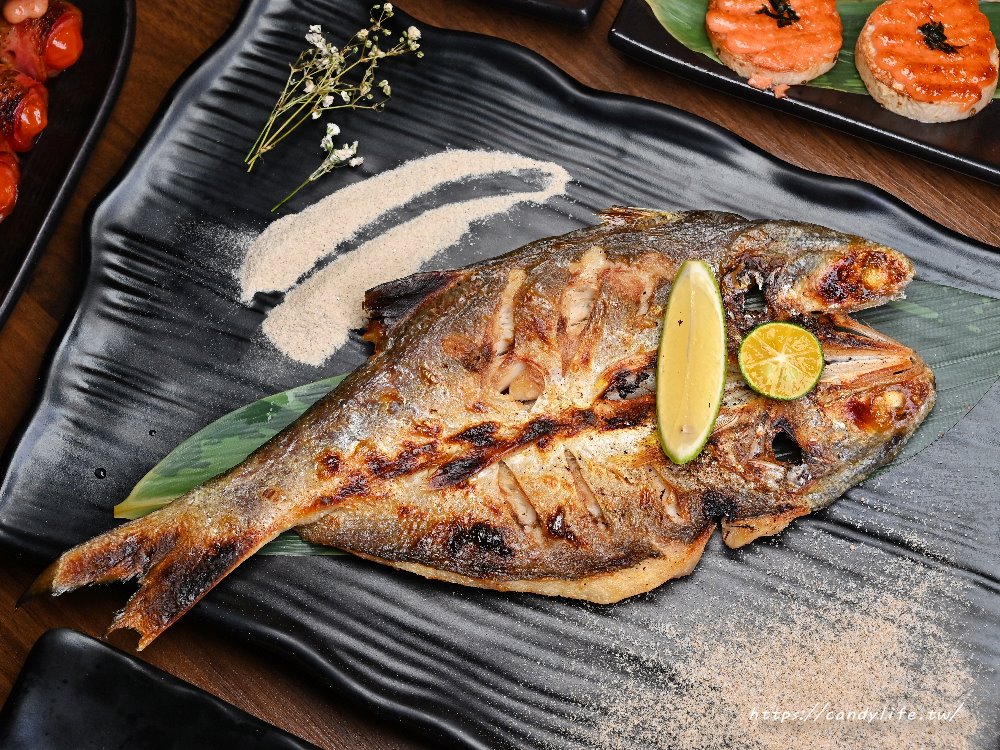 這道烤午魚以傳統一夜干手法製作,經過鹽漬與風乾,使魚肉香氣更加凝聚,烤製時外皮被火候細緻逼出油脂,形成金黃酥脆的口感,裡頭的魚肉則保持鮮嫩多汁,鹹香交織,記得趁熱吃口感最佳