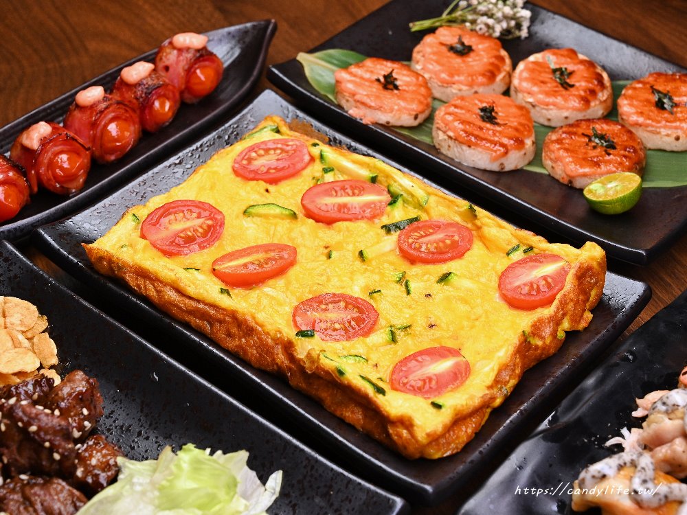 這道隱藏版烘蛋也太美了吧!糖糖第一次看到烘蛋做成長方形的樣子,口味依現場為主,今天吃到的是櫛瓜番茄口味,將櫛瓜切成細絲與蛋液拌勻後煎成蓬鬆的烘蛋,最後再鋪上小番茄點綴,口感清爽又柔嫩,蛋香中帶著蔬菜的鮮甜,越吃越順口
