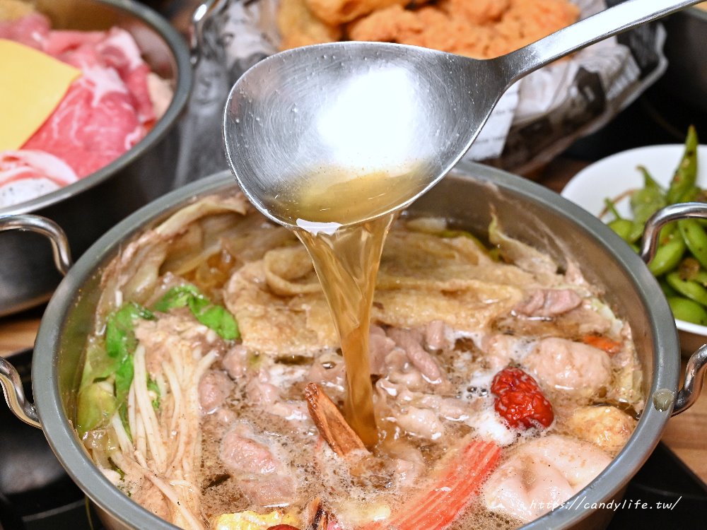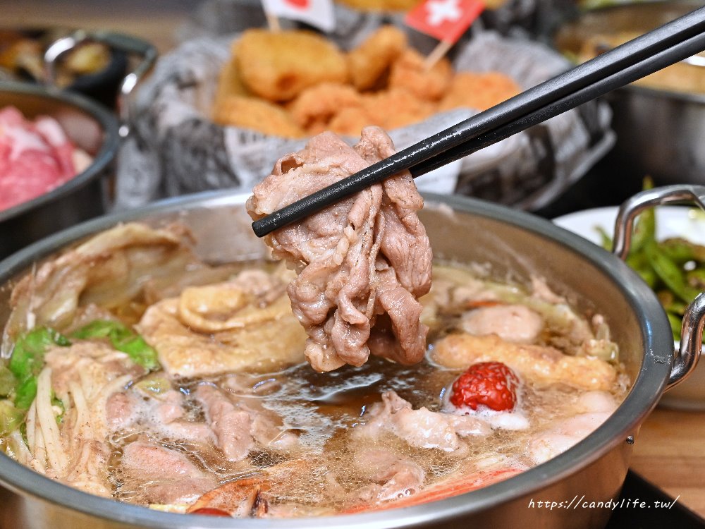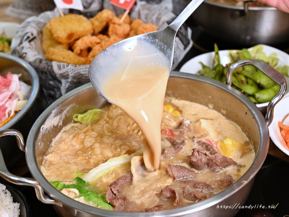 如果您想嘗試點不一樣的,這鍋豆漿壽喜燒絕對會讓您耳目一新!這款湯底將日本經典的壽喜燒與醇厚豆漿結合,不同於一般壽喜燒的死鹹,加入豆漿後的湯頭色澤呈現乳白色般的濃稠感,豆漿的豆香與壽喜燒的甘醇醬汁完美融合,入口後先是濃郁的奶香感,接著散發出壽喜燒特有的鹹甜味