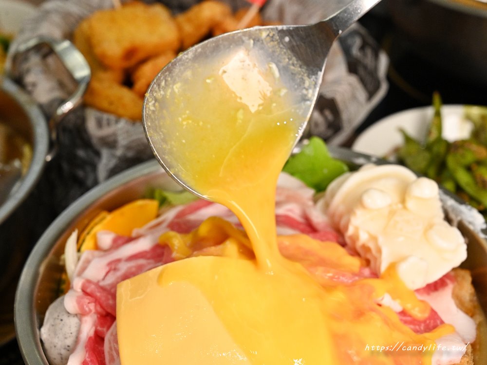 如果你喜歡濃郁奶香又愛南瓜的朋友,這鍋南瓜雙倍牛奶起司鍋一定要點!一上鍋就被那誠意滿滿的配料給驚艷。除了鍋底鋪上大片厚實的肉片外,最吸睛的就是那隻坐在肉片上的立體舞獅牛奶貓