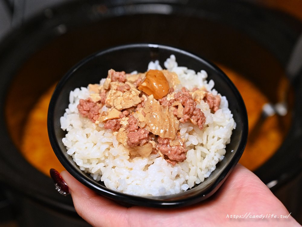 許多饕客推薦必吃的就是這碗滷肉飯!鍋裡的肉燥肥瘦參半,滷得入味鹹香,淋在白飯上讓人忍不住一碗接一碗。這對於無飯不歡的人來說,光是這區就已經值回票價