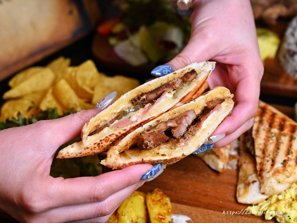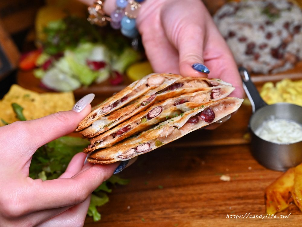 如果你偏愛口感軟糯、風味濃郁的捲餅類美食,推薦這道「雞肉豆泥卡莎蒂亞」,使用輕薄的麵餅夾入滿滿的餡料,並熱壓至外層金黃微焦,內餡是主角是香嫩雞肉與綿密豆泥,搭配香濃起司,一口咬下,能感受到餅皮的微脆、雞肉的紮實、豆泥的細膩以及起司的鹹香,鹹甜交織,層次感非常豐富