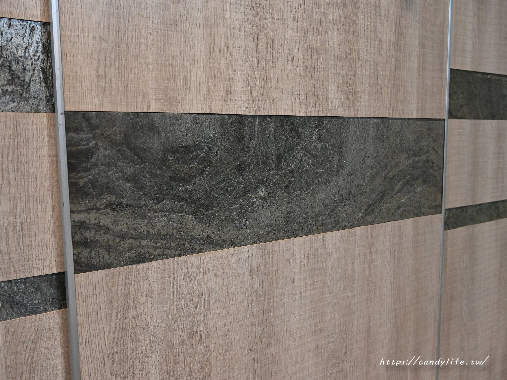 這款康拓 V313 系統 9 尺推門衣櫥最特別的亮點在於內部巧妙嵌入天然石材,不僅增添獨特質感,也展現高級工藝美學,推門設計簡潔大方,操作順暢,搭配精緻材質與細膩結構,不僅實用收納,更為臥室空間增添自然優雅的氛圍