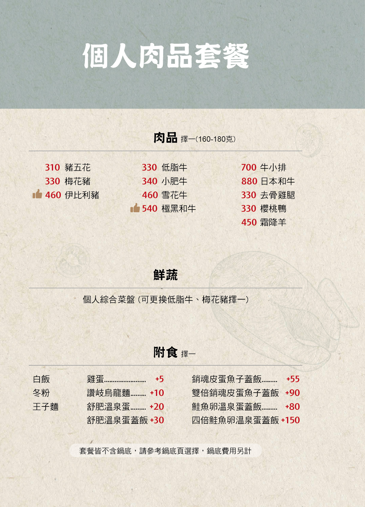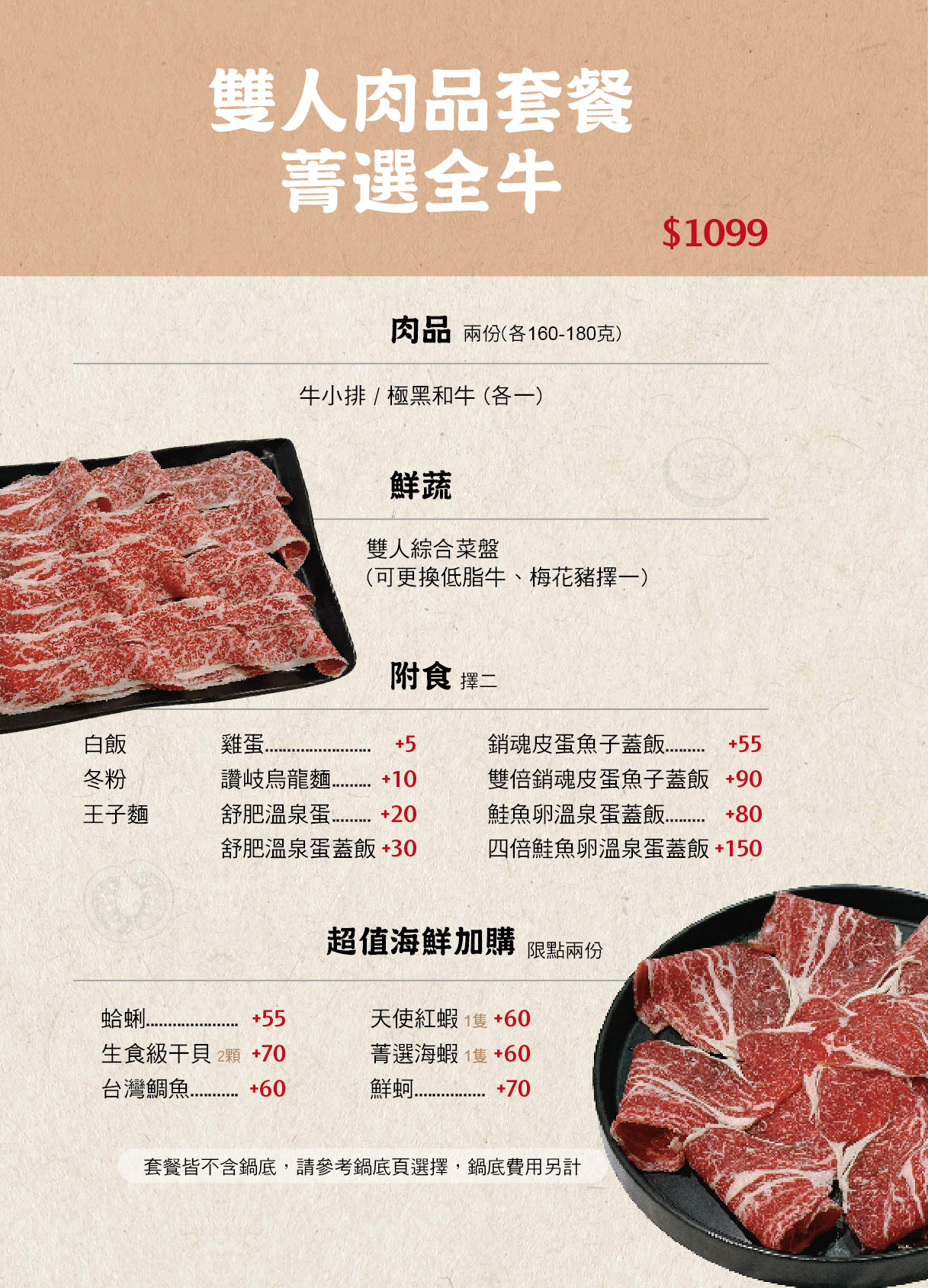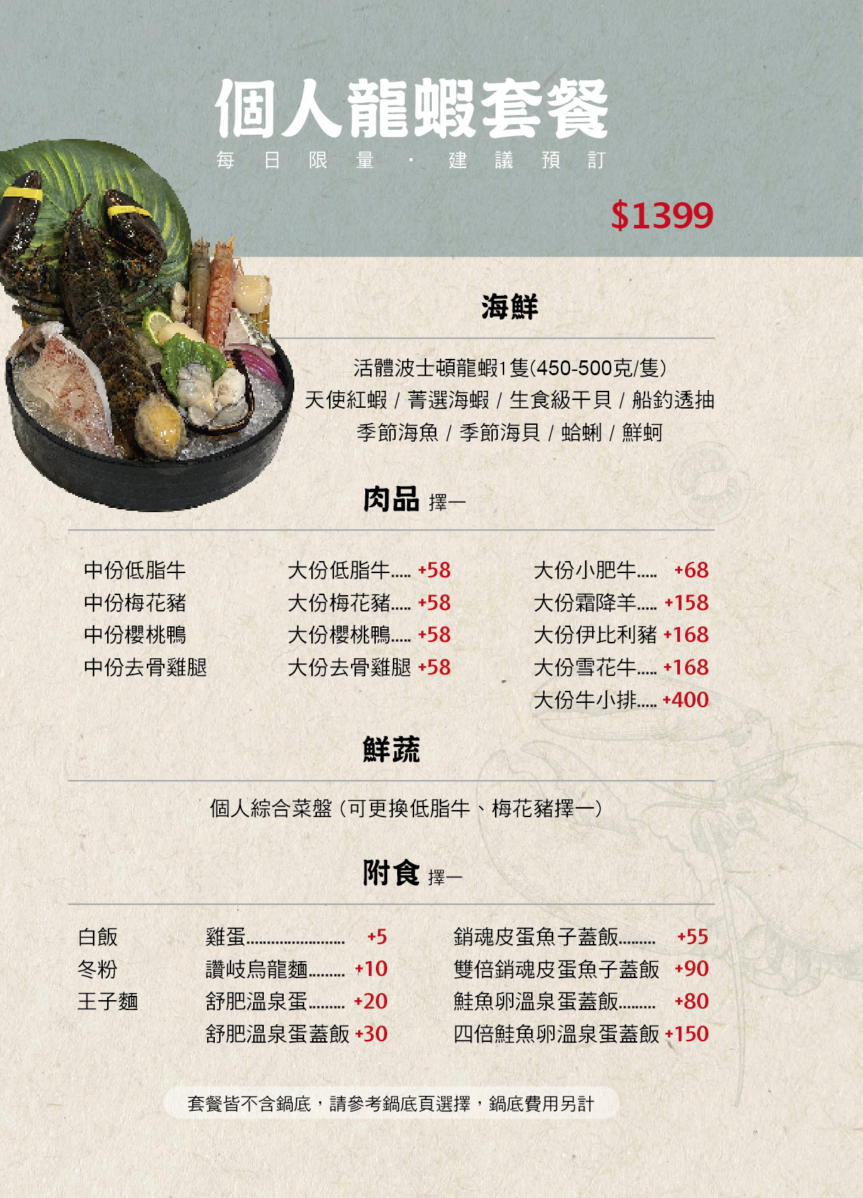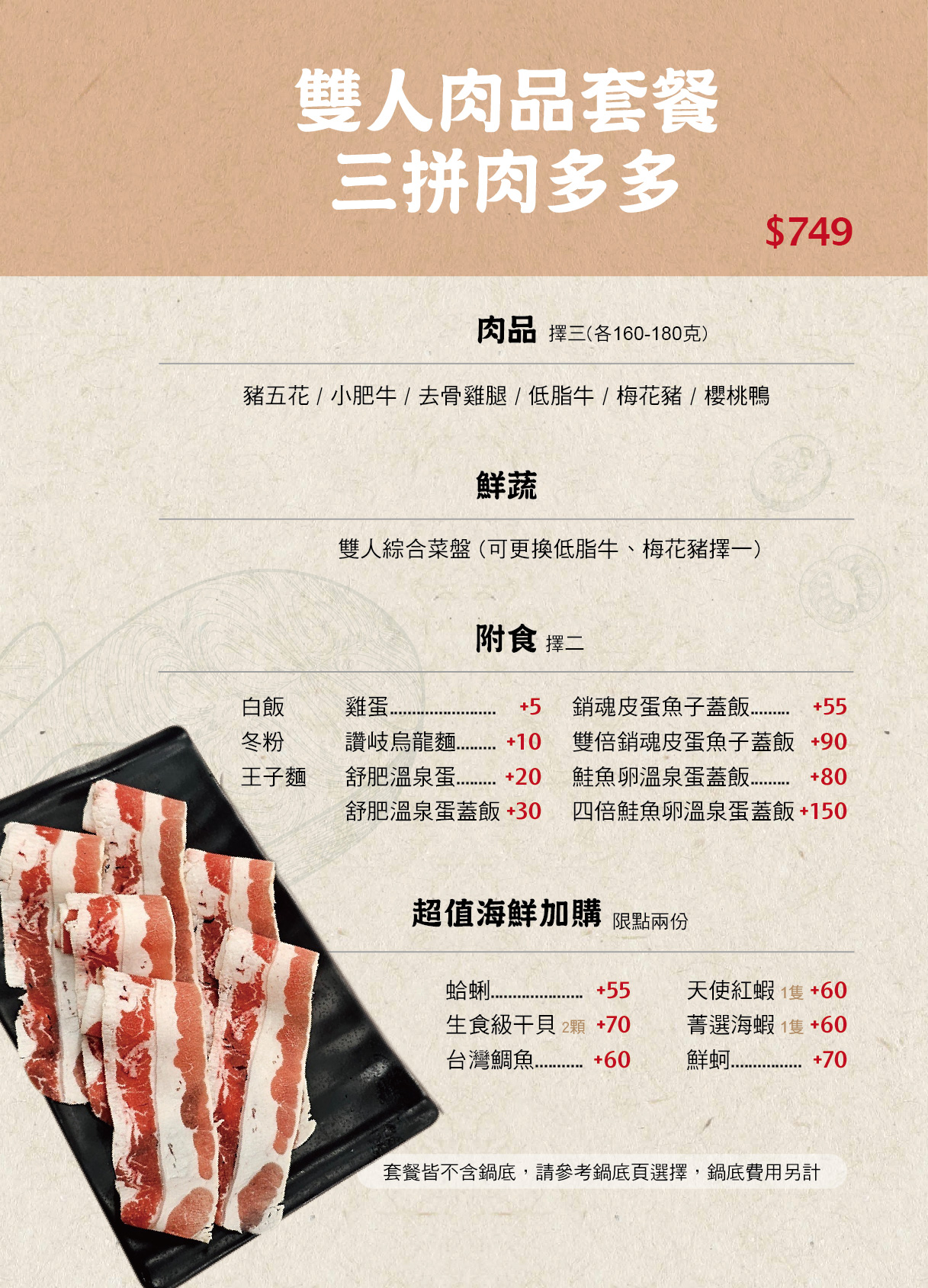 菁選涮涮鍋菜單