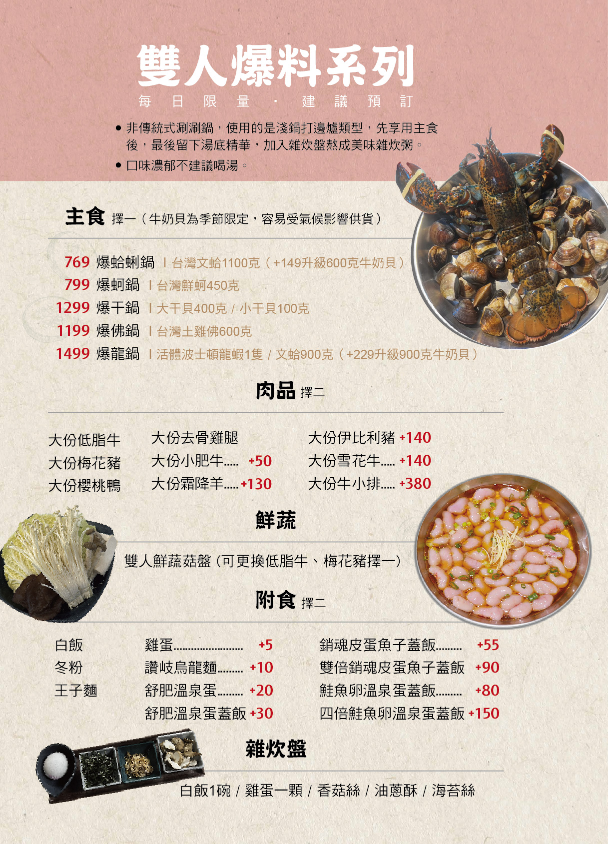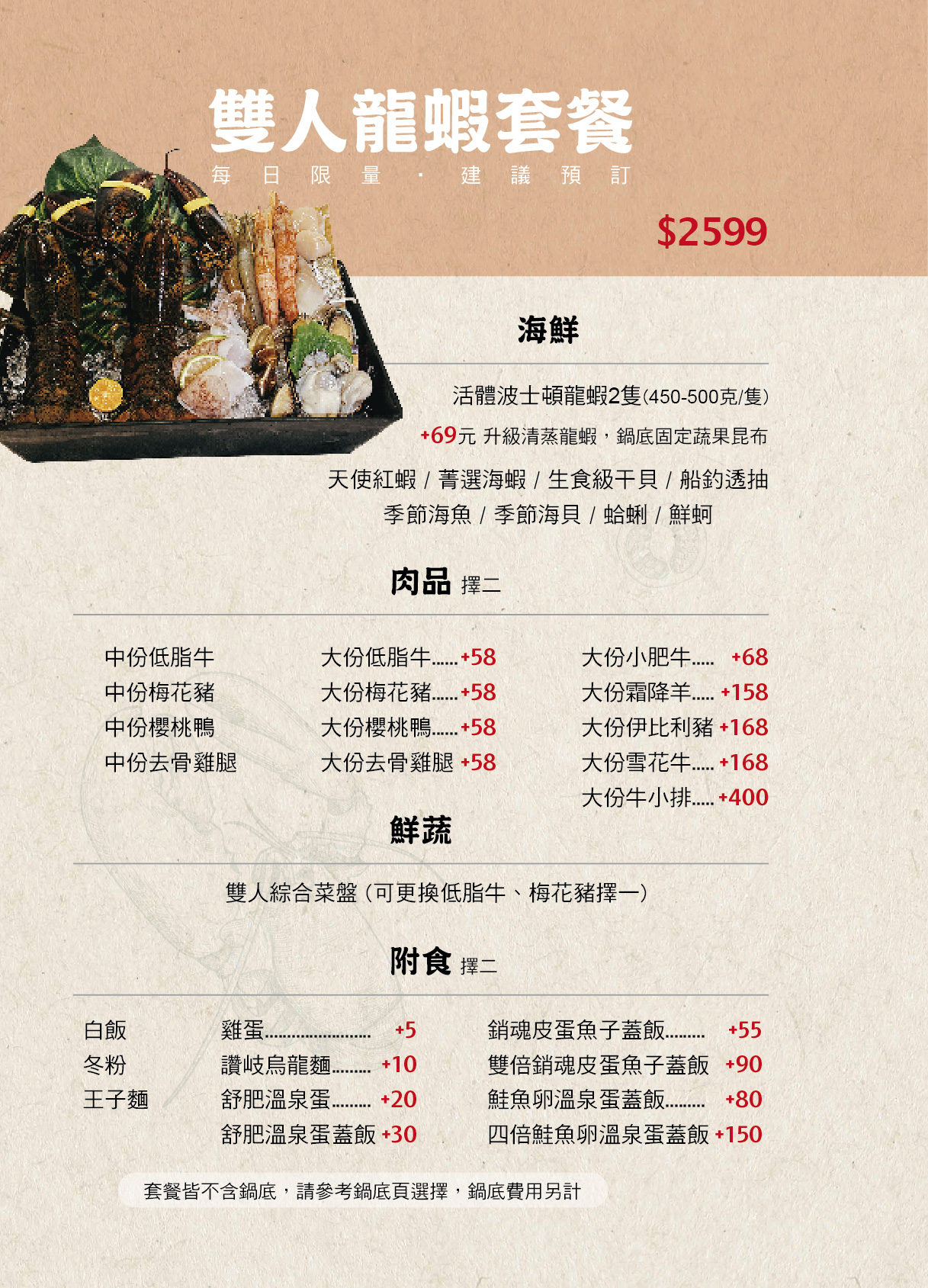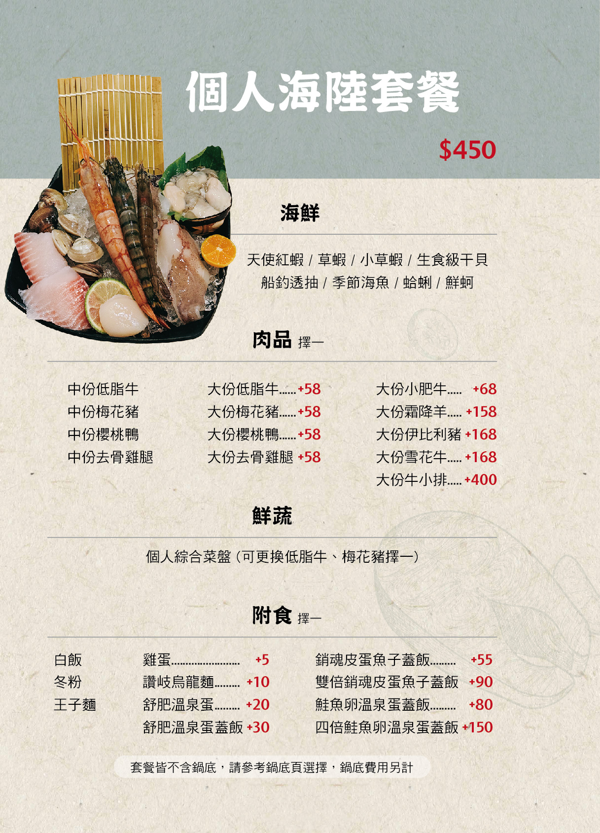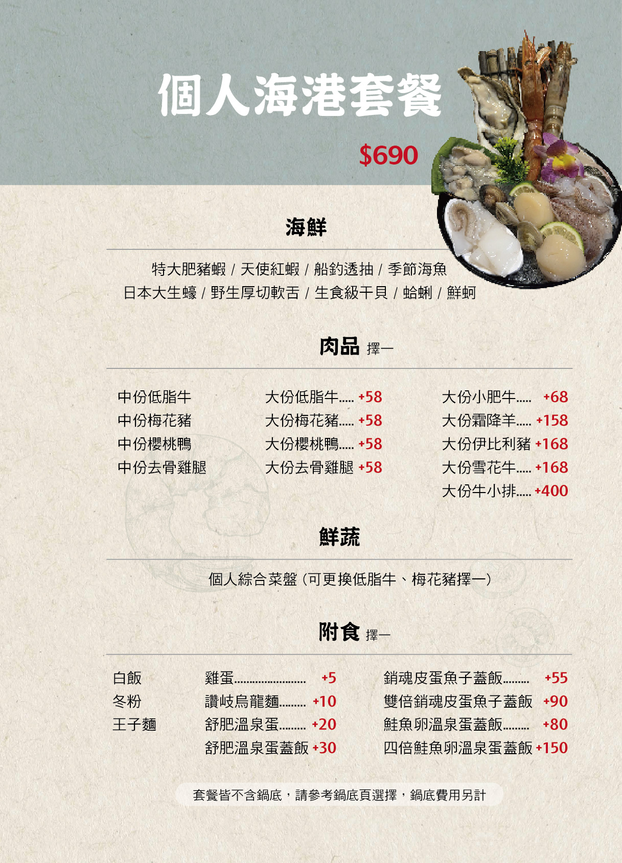 菁選涮涮鍋菜單
