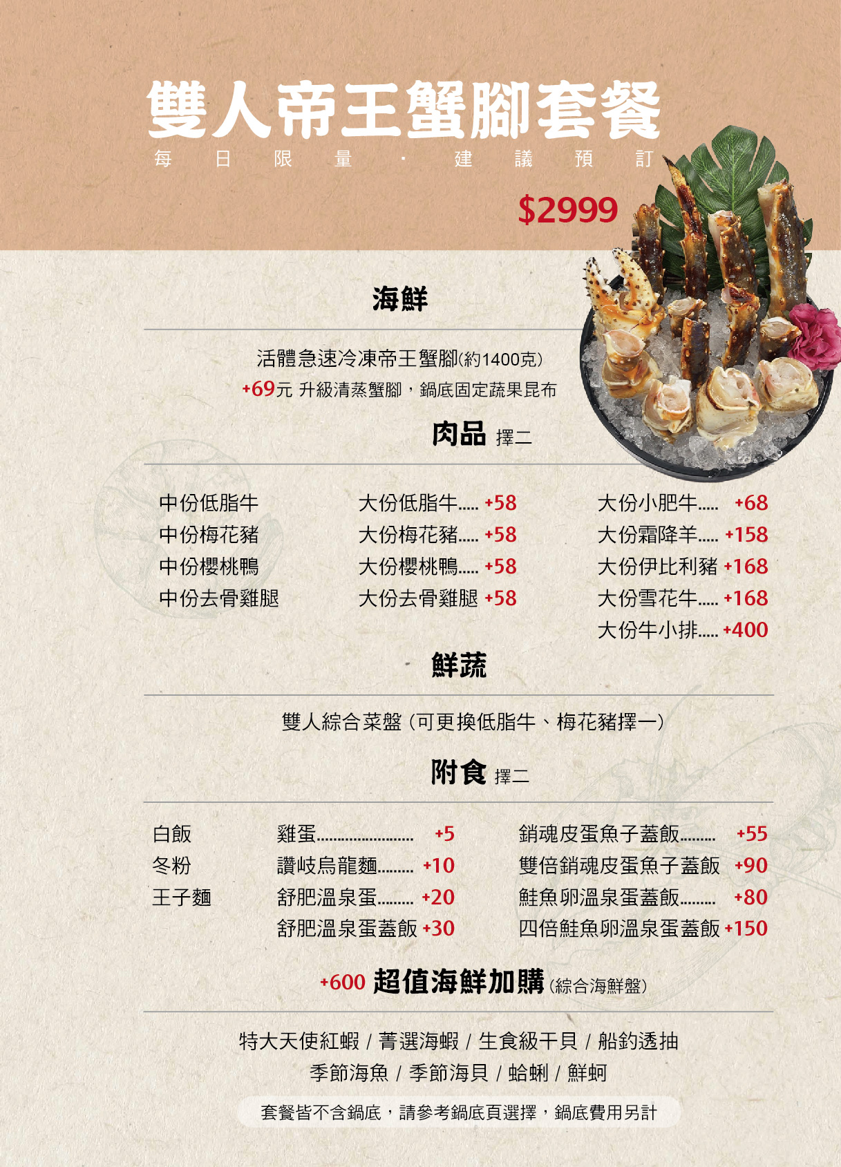 菁選涮涮鍋活體帝王蟹套餐價格參考