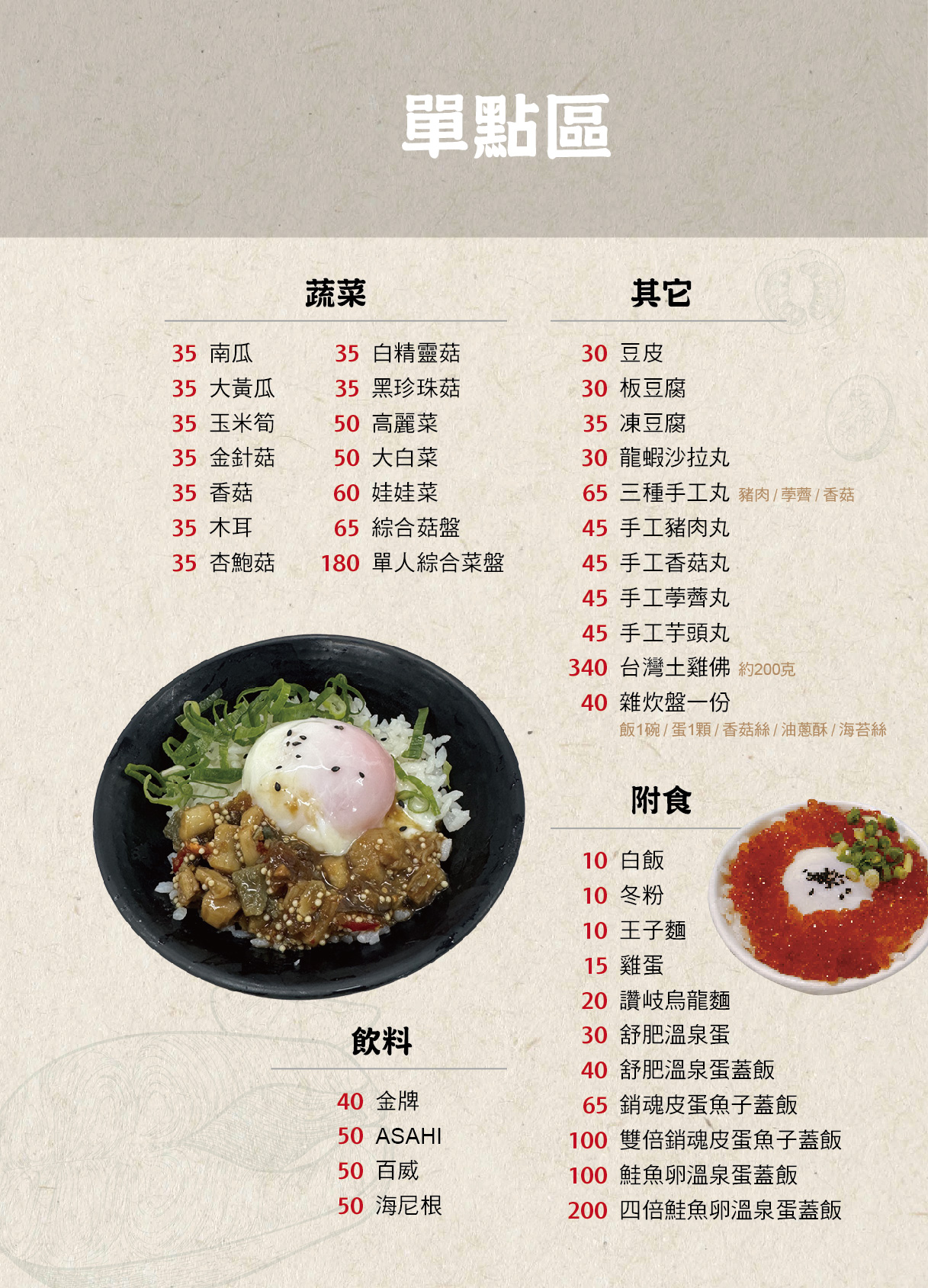 四倍鮭魚卵溫泉蛋飯 加價150元