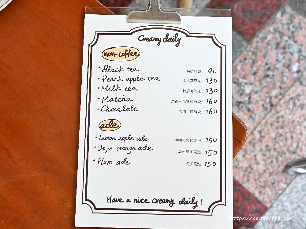 這間隱身在南屯住宅區的 CREAMY DAILY CAFE,用它獨有的奶油色調與精緻甜點,在繁忙的城市中開闢了一塊溫柔的角落,即便開幕多年,依然是許多甜點控心中的口袋名單,下次來到豐樂公園附近,別忘了推開那扇鵝黃色的大門,給自己一個韓系質感的午後時光!建議大家一定要早點來,太晚來很東西都賣完了