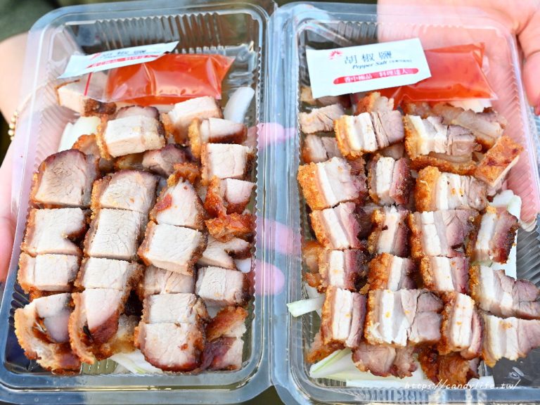 超好吃的港式脆皮燒肉在台中夜市就能吃到,香脆滋味,咬下去還會卡滋卡滋~