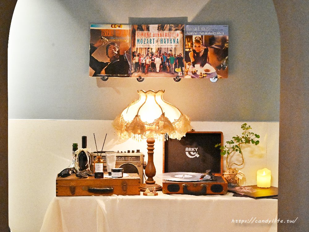 此外,店內角落更有許多復古巧思,像是古典歐風檯燈、舊式黑膠唱片機、古董行李箱和經典復古唱片封面的擺設,讓人彷彿置身於一間私人收藏館,每一處都值得細細品味