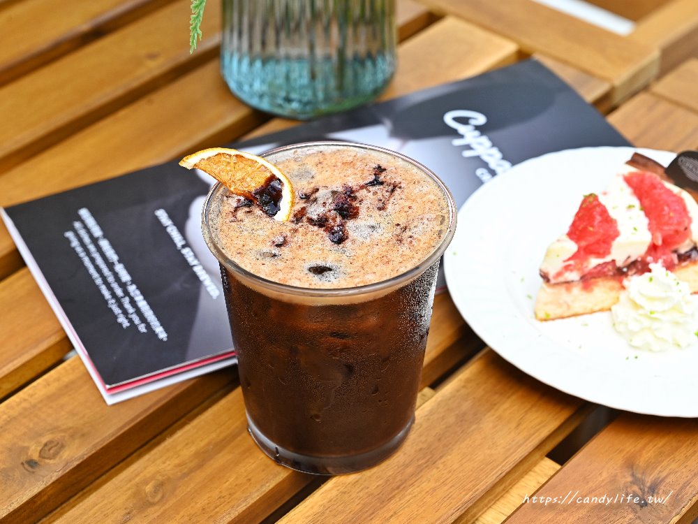 黑咖啡基底中融入了桑椹的酸甜,最上方還點綴了乾燥柳橙片增加視覺美感,桑椹的果感巧妙地修飾了美式的微苦,喝起來既有咖啡的醇厚,又帶著果汁般的清透與甜感