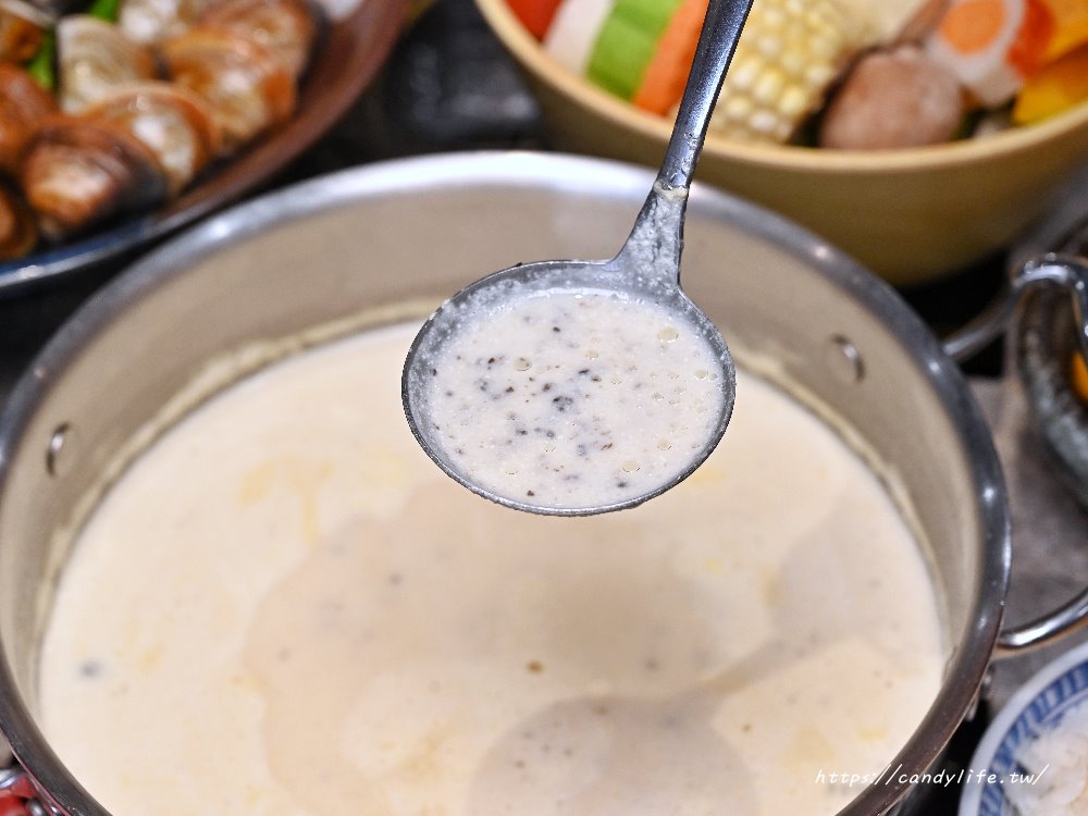 這道湯底簡直是火鍋界的法式料理!松露牛肝菌鍋以雪白湯頭為基底,散發著誘人的奶香味,香氣層次豐富且不膩口。 撈起湯頭時,還能看到豐富的牛肝菌點綴其中, 這種將西式濃湯精髓融入個人火鍋的創意,讓每一片涮入的肉片都像沾裹了奢華醬汁,讓人一吃就愛上