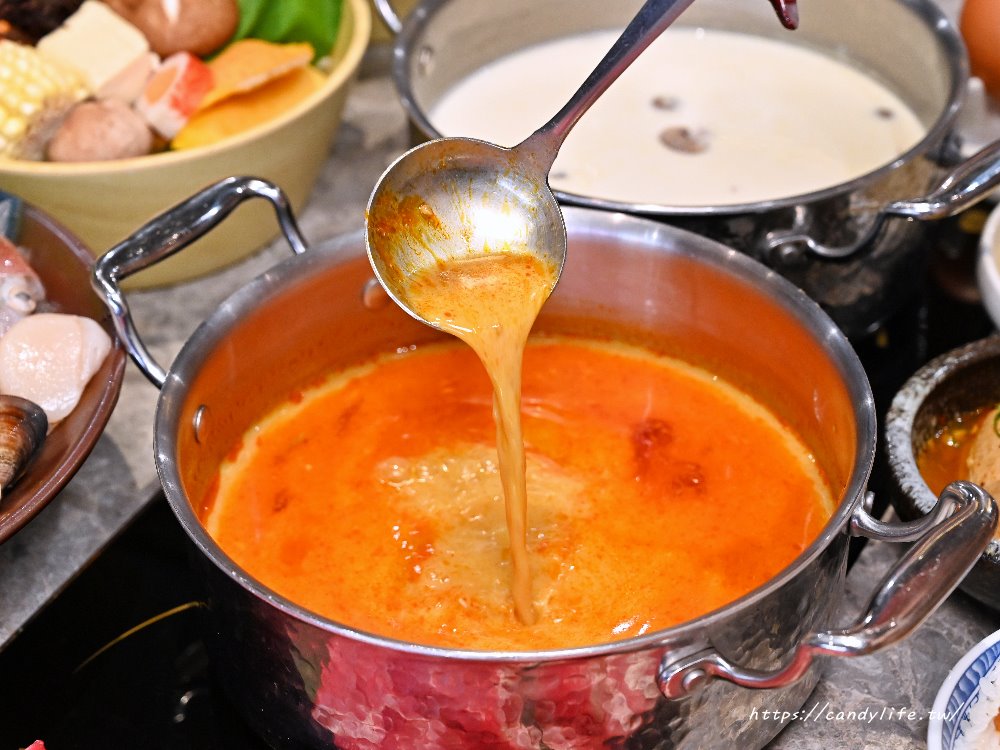 除了創意松露鍋,南洋叻沙鍋也是人氣湯底之一! 橘紅色的湯頭散發著濃郁的椰奶香與多種南洋辛香料的氣息,喝起來鹹香微辣,非常有層次感