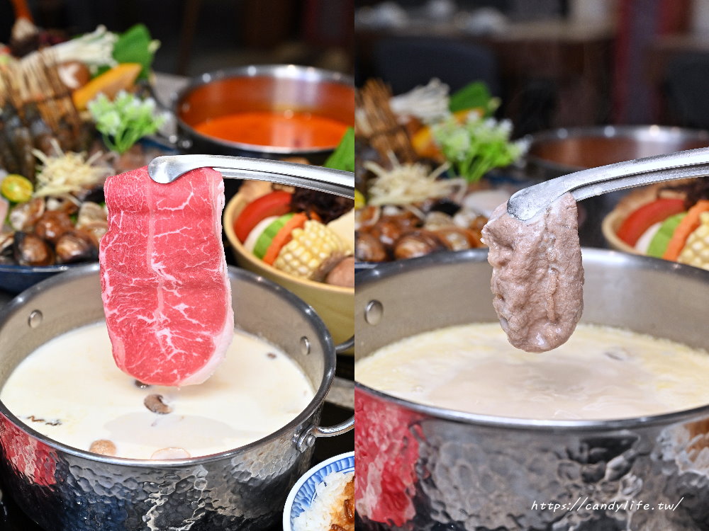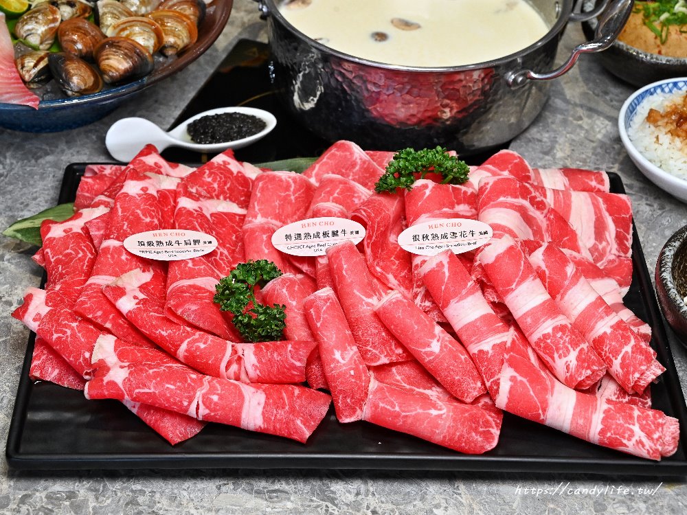 如果是兩人享用又愛吃牛的朋友,糖糖還蠻推薦這個「頂級熟成美牛三寶」的雙人套餐,裡頭包含頂級熟成牛肩胛、很秋熟成雪花牛及特選熟成板腱牛三種肉品,經過濕式熟成處理後的牛肉,肉香味更加濃郁,輕輕在鍋中涮個幾秒,那種入口即化的鮮甜滋味,真的讓人回味無窮