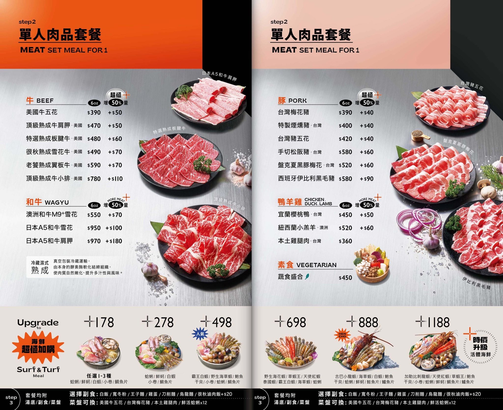 頂級熟成牛肩胛,肉質紮實、帶有迷人嚼勁,三款皆採用美國頂級熟成牛肉,肉質水準極高,搭配松露牛肝菌鍋更是奢華美味的頂點