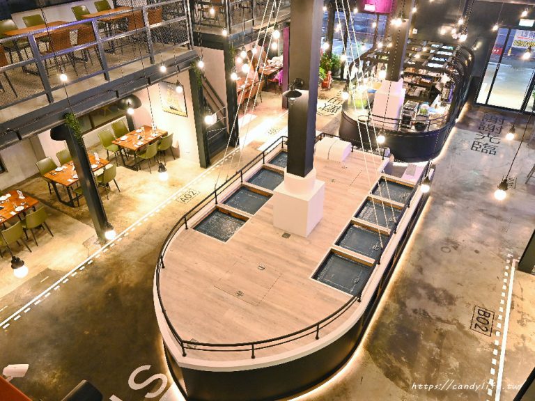 一走進店裡頭真是把糖糖給驚呆了,店裡竟然藏著一艘這麼大的船,整個挑高設計,讓裡頭空間看起來更加寬敞,裝潢融入海、造船廠、船隻、釣蝦、釣魚等概念下去設計,並在店的正中央打造出一艘準備啟航的大船,這巧思真的太有創意了
