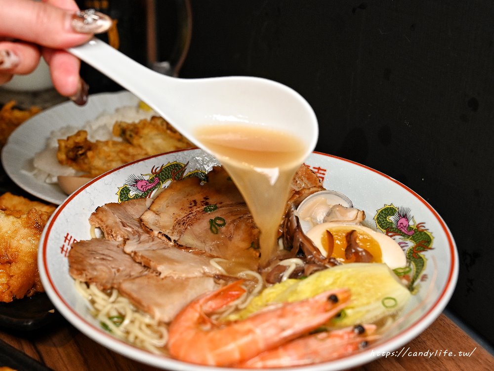 主打淡麗系拉麵,湯頭清澈鮮美,標榜無添加味精,以雞骨、大骨與新鮮蔬果慢火熬煮超過48小時,再加入魚介提味,層次分明、清爽不膩,搭配豐富配料,包含自製溏心蛋、炙燒叉燒、鮮蝦、小卷、蛤蜊、黑木耳及娃娃菜