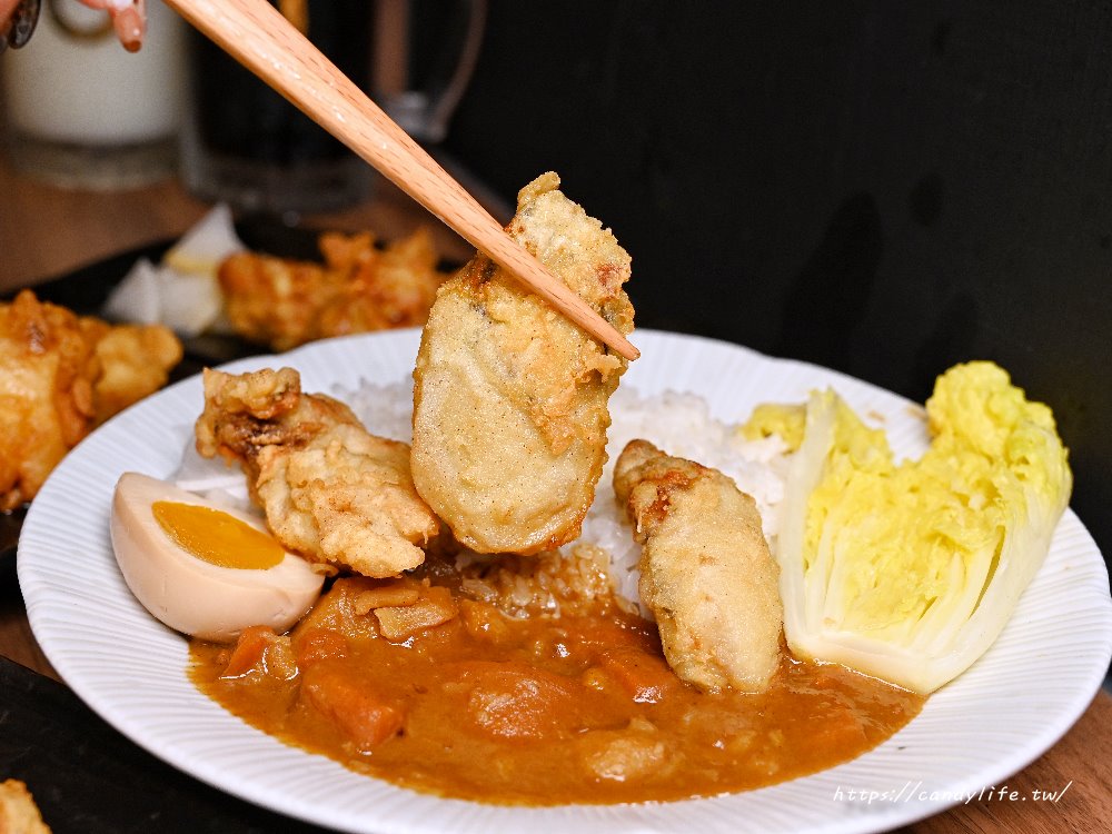主角廣島炸牡蠣,炸法是天婦羅炸法,採用店家自製調配的粉漿,麵衣酥脆,裡頭牡蠣不僅肥美大顆,咬下去還會爆汁呢