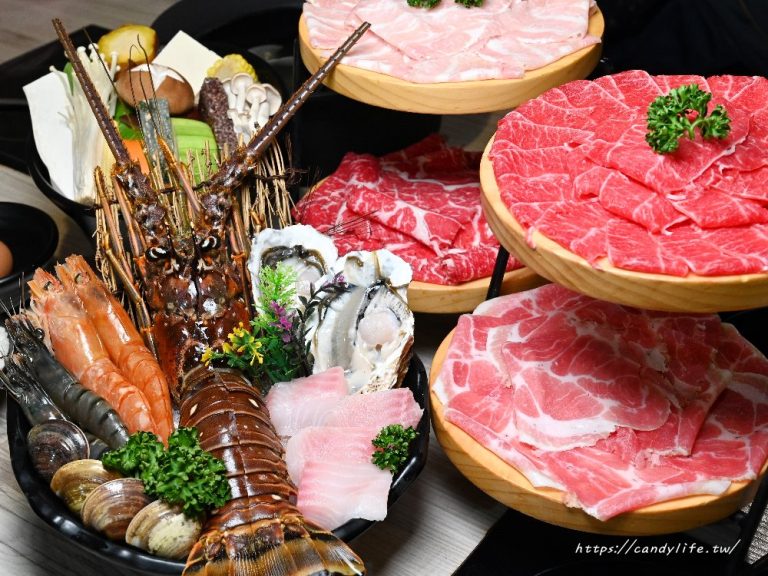 咪拉鍋物的經典傳奇雙人套餐裡頭包含了低脂牛6oz、黑豚梅花豬6oz、青殼波紋龍蝦、天使紅蝦、草蝦、生蠔、蛤蜊及鯛魚片,一個海陸雙拼的概念,內容物還挺豐富的呢