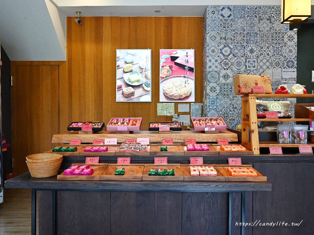 哲生御用名點的店內裝潢融合傳統與現代的細膩美感,空間以溫潤木質為基底,營造出溫暖舒心的氛圍,入口迎面而來的中式糕餅陳列區,以木作層架整齊排列各式經典糕點,搭配繽紛的包裝與清晰的標示,讓人一眼就能感受到滿滿的節慶氛圍