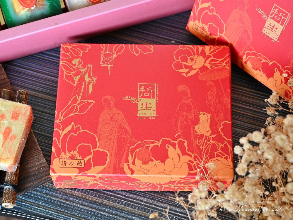 以鮮紅與金色交織出濃濃的東方雅韻,搭配細緻描繪的仕女圖與牡丹花紋,展現古典又不失華麗的氣息,禮盒中的綠豆黃均以冷藏方式保存