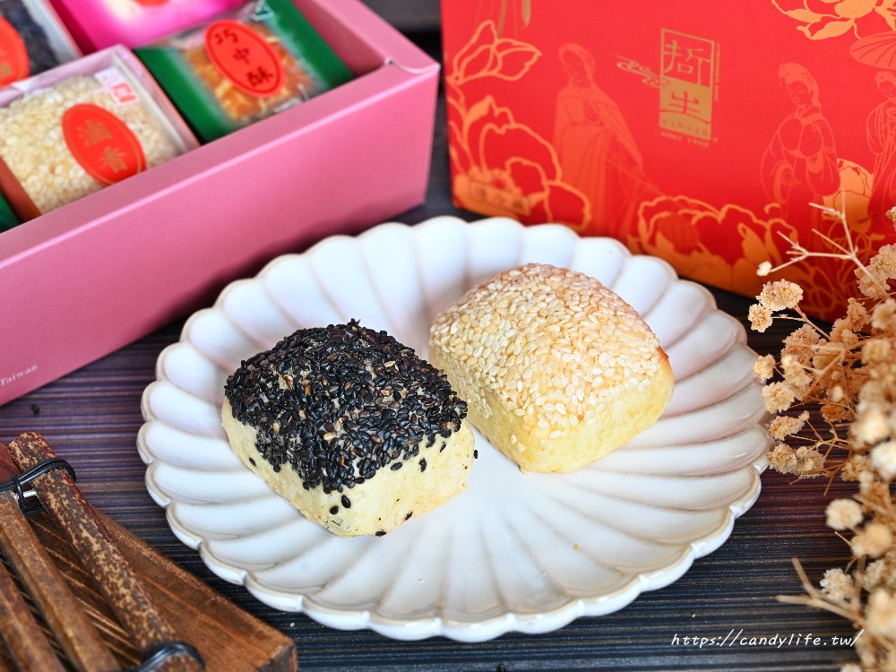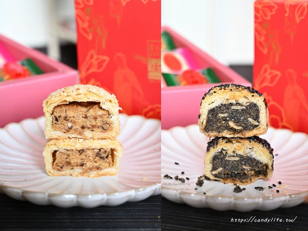 想要鹹香風味的糕餅,推薦滷香及芝麻椒鹽這兩款,滷香是採用店家自製滷香菇,搭配細緻白豆沙,上層鋪上滿滿芝麻增添香氣,鹹甜交織,讓人一口接一口,另一款鋪上滿滿黑芝麻的芝麻椒鹽,內餡採用芝麻粉與堅果,加上桂花與花椒所製成的傳統蘇式點心,一入口先感受到濃濃芝麻香氣,交織著花椒的椒麻鹹香,不時還會蹦出堅果的清脆口感,是款還蠻特別的中式糕點