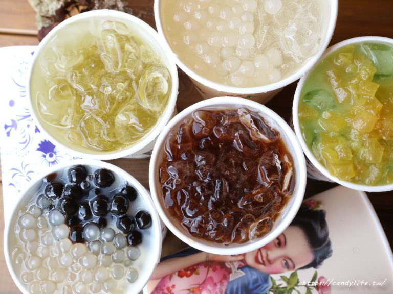 如果想要喝到豐富的配料,除了剛剛的熊貓黑糖鮮奶茶外,還有這杯雙玉檸檬也是滿滿的配料,除了手做白玉粉圓外,還多了愛玉在裡頭