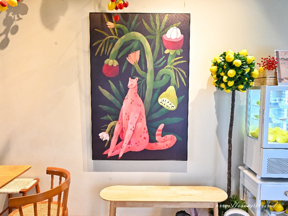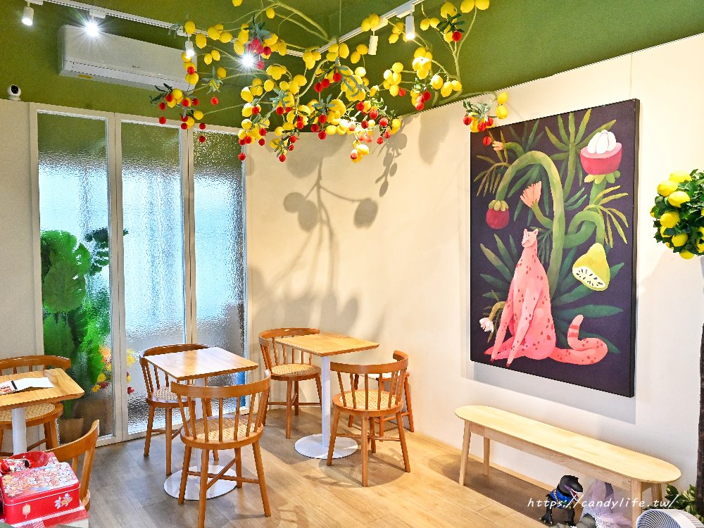 店內座位區以溫潤的木質桌椅為主,牆上掛著色調大膽、帶點插畫風格的叢林動物畫作,為空間增添了不少藝術氣息,這裡的每個角落都經過精心設計,不管是坐在窗邊看風景,還是在「檸檬樹」下跟朋友聊天,拍起照來都超級好看!