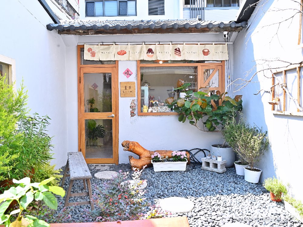 裏萊位在台中東區復興路四段220巷弄中,距離台中火車站步行約五分鐘的路程,由老宅改建,充滿日式小清新風格的咖啡店外觀,散發著溫馨又療癒的氛圍,庭院鋪滿灰黑色鵝卵石,中間擺放著一張木長椅與一塊自然形狀的原木,營造出一種親近自然、靜謐雅致的空間感