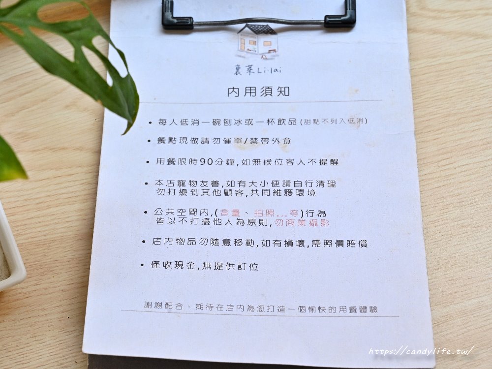 糖糖很喜歡裏萊的氛圍,彷彿走進靜謐的森林中,讓人放慢腳步,度過愜意的午後時光,日式刨冰口味多樣化,不僅畫面美,層次也相當豐富,不定時還會推出季節限定口味的日式刨冰唷