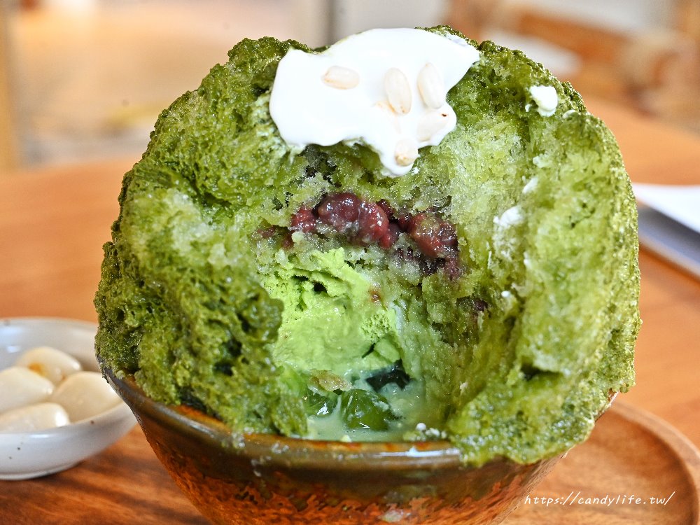 中間還藏著Q嫩的抹茶凍及蜜紅豆,層層堆疊出日式和風的經典滋味,一旁還有手工白玉可以搭配享用,每一口都像走進京都街頭,靜靜感受茶道文化的沈穩與優雅,既療癒又消暑,是抹茶控絕對會愛上的口味首選