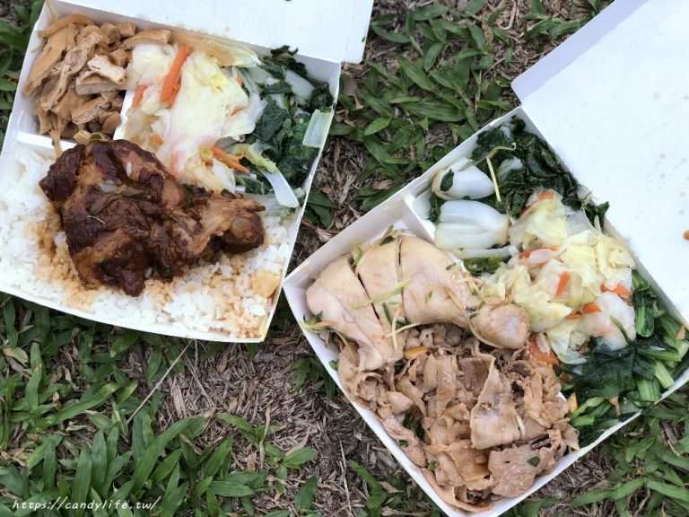 另外一個便當糖糖點了雙主餐,蒜泥白肉加上油蔥雞腿,總共110元,三樣小菜加上兩樣主餐,畫面看起來更豐富,是說這樣一個便當我們兩個女孩吃剛剛好~
