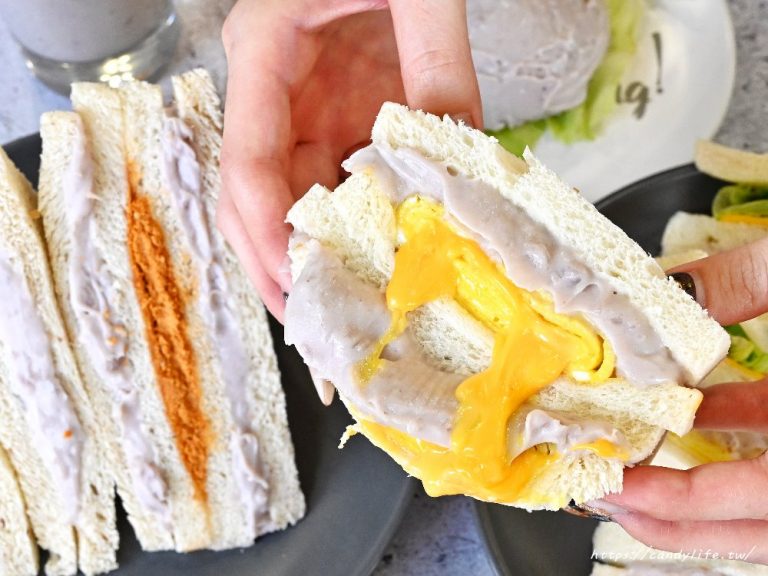療芋系列總共還推出三款三明治,除了總匯之外,這兩個三明治也很吸引糖糖,尤其是肉鬆與芋頭的搭配,沒想到意外的一拍即合,肉鬆本身帶有一點鹹度,搭配芋泥一起入口,鹹甜鹹甜的滋味真的讓人一口接一口停不下來,對了~貼心小提醒,這兩款三明治只限外帶喔