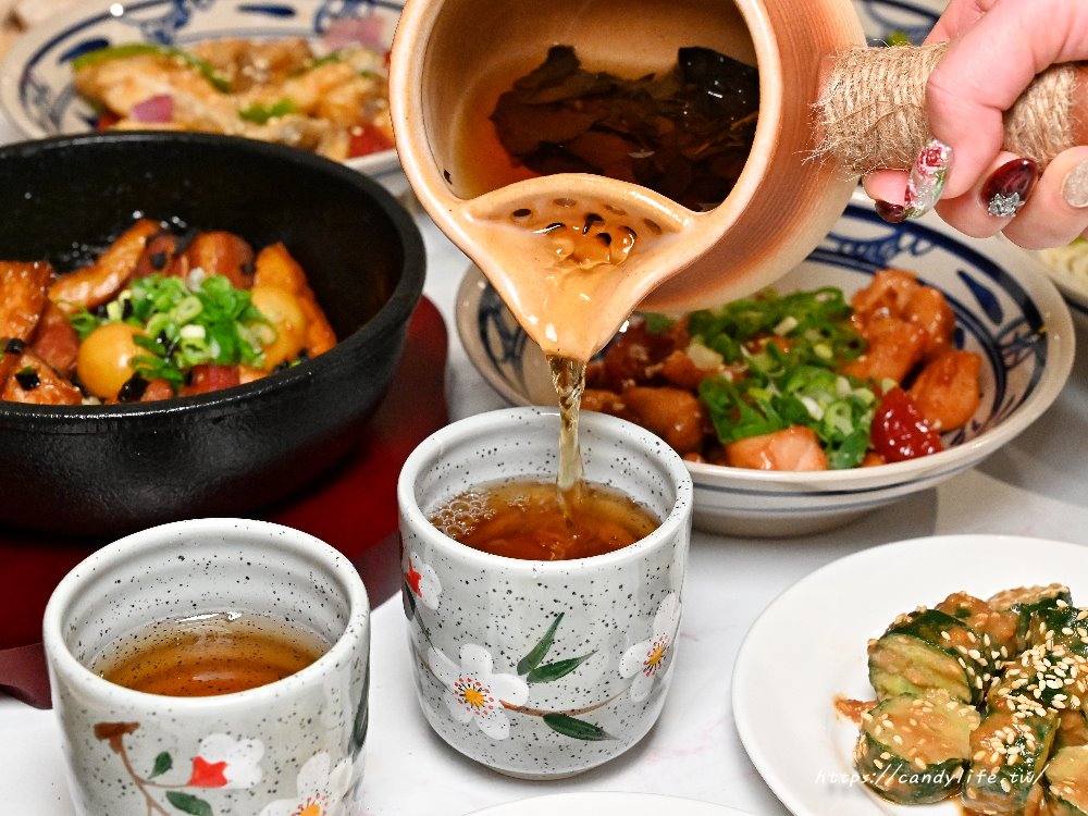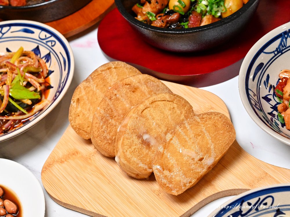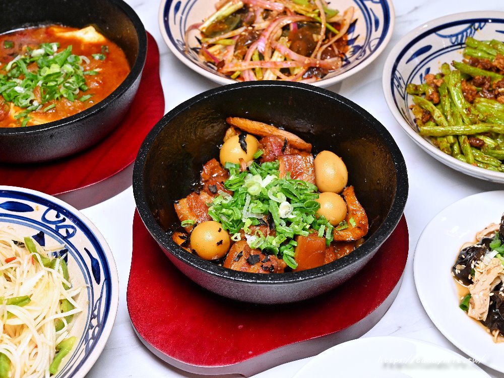 鍋底鋪滿了吸飽肉汁的梅干菜,帶來獨特的陳年鹹香,讓整道菜的味道層次更加深厚,此外,鍋內還加入了Q彈的鳥蛋及豆干,吸附滷汁,鹹香四溢,搭配白飯超讚