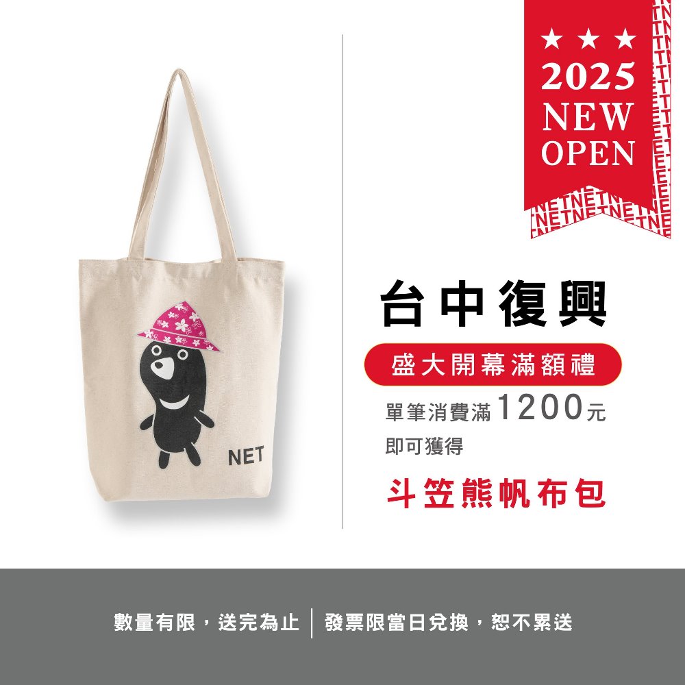 台中最新NET台中復興店於9/27開幕囉!剛好選在跟台中新光三越開幕同一天,店面超大一間,還沒開幕前就備受矚目,整棟共有五層樓,當日消費滿1200贈斗笠熊帆布袋,還有紅標商品,一件6折、三件5折、五件4折優惠,買越多越划算