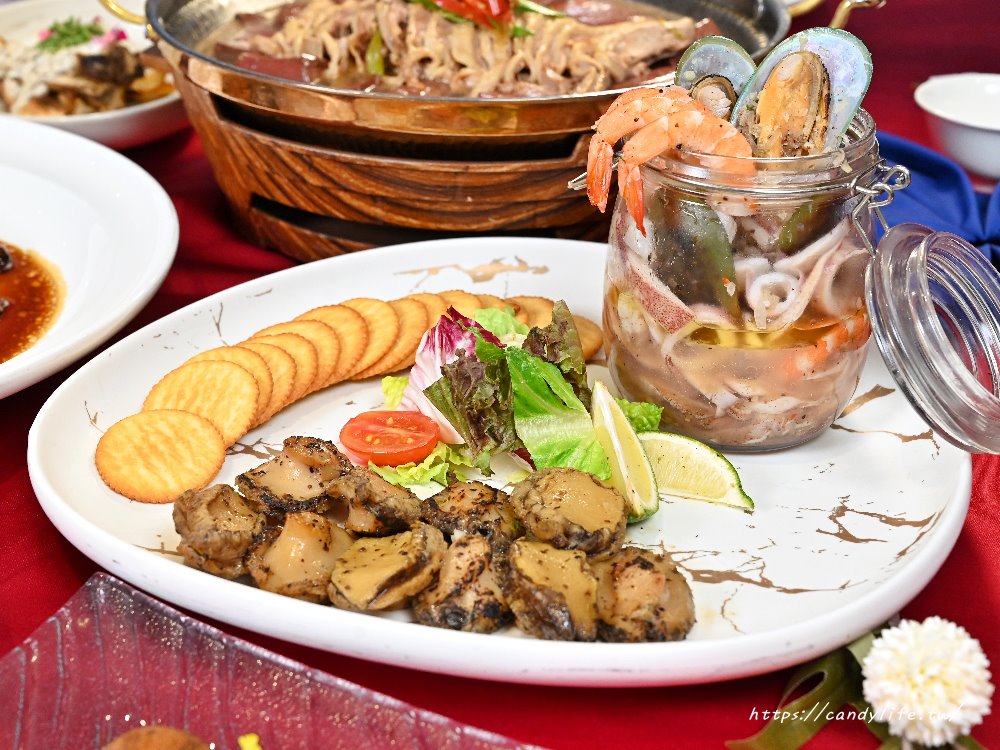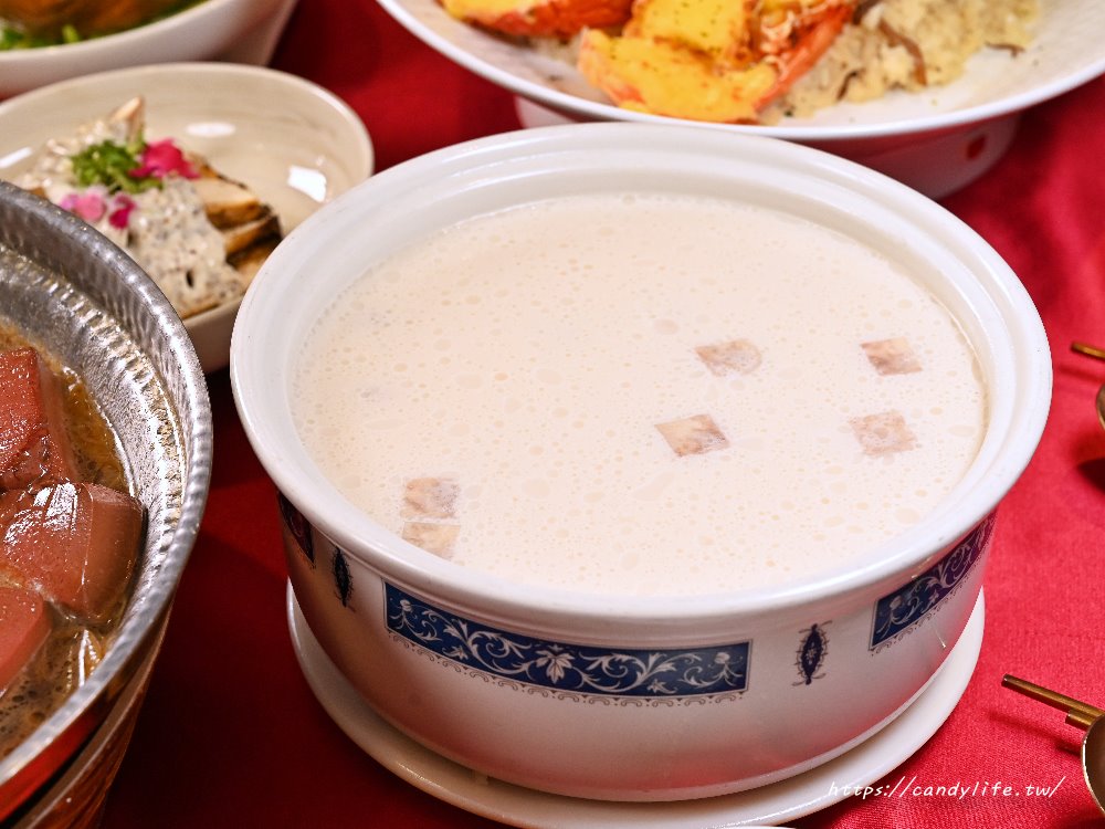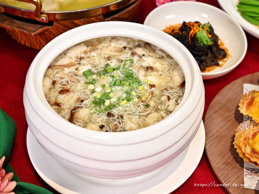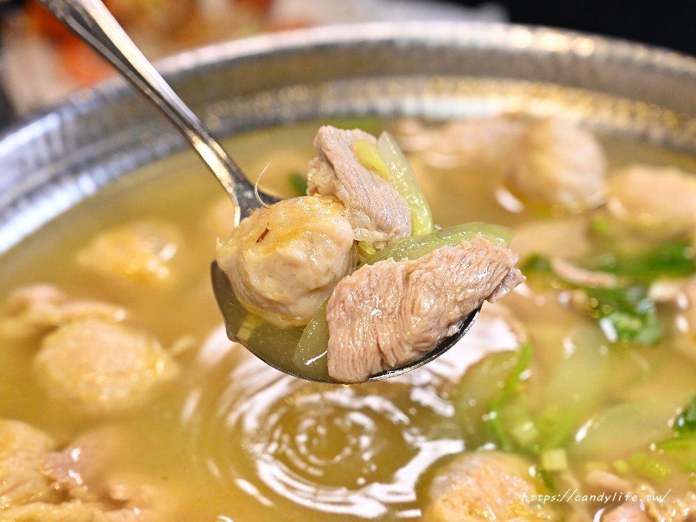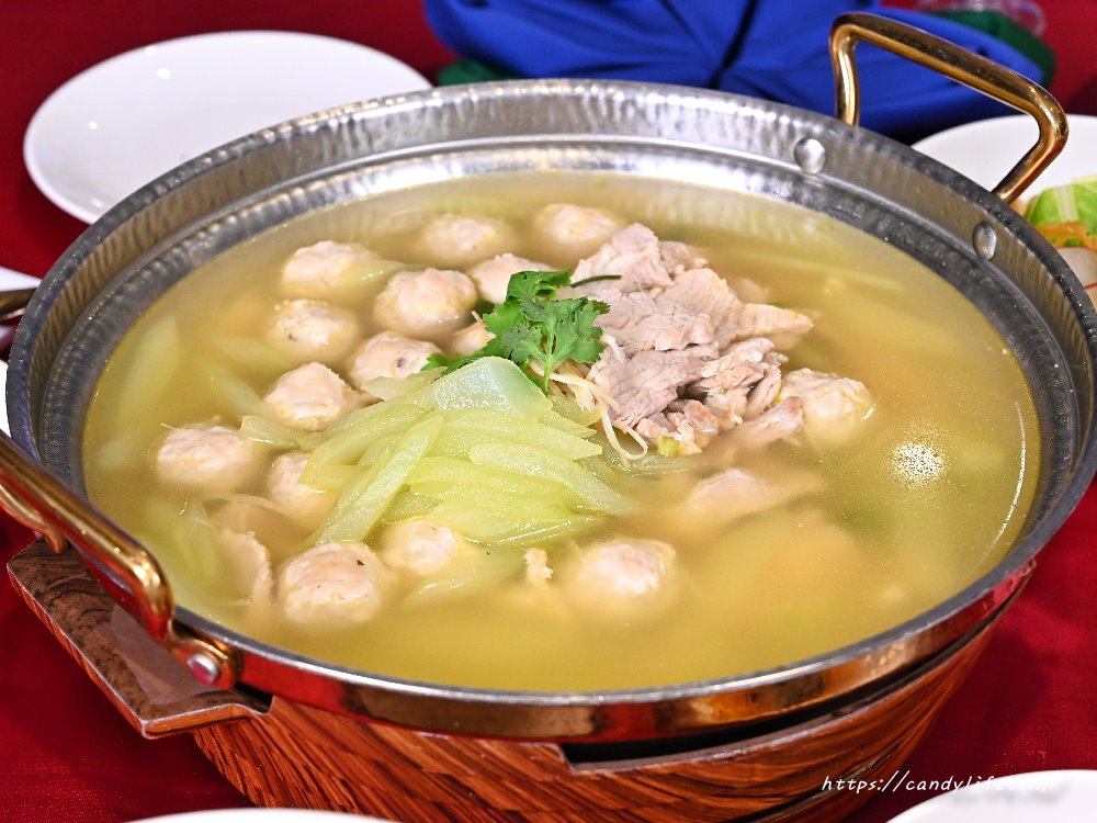 裡頭的魚翅丸不僅彈牙爽口,更能品嚐到滿滿海味的鮮甜細膩,厚切梅花豬肉嫩而多汁,搭配吸飽湯汁與清脆多汁的大黃瓜,湯底溫潤甘甜,是一鍋兼具澎湃視覺與家常溫馨的暖心湯品