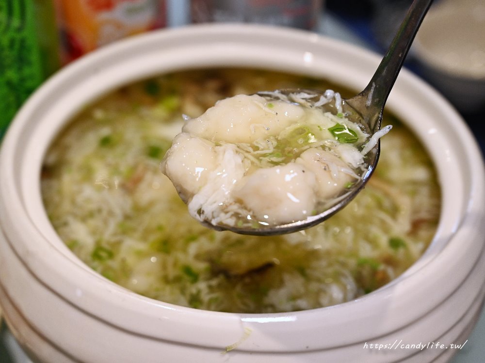 滑潤濃郁的羹湯中,用湯匙一撈,裡頭滿滿都是料,Q彈柔嫩的干貝,伴隨銀魚鮮香交織,鹹鮮中帶著海味的甘甜,再點綴上翠綠菠菜泥,不僅增添色彩,更帶來一抹清新爽口的尾韻,層次豐富、口感十足