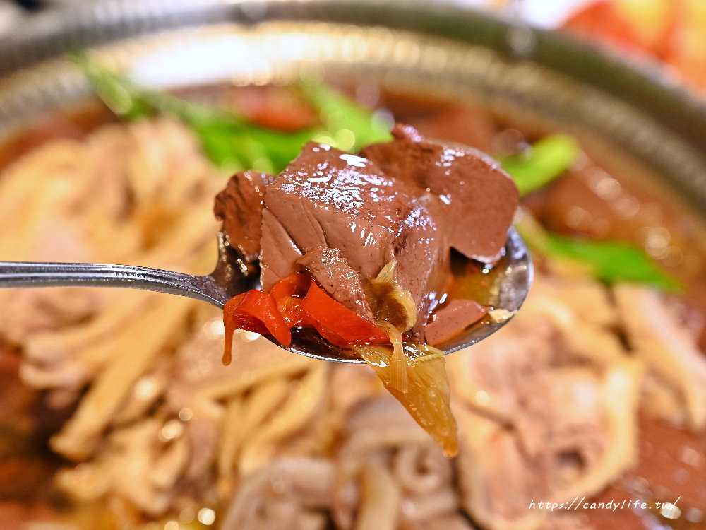 嚴選肥嫩鵝肉,以溫火細煮鎖住肉質的鮮甜與滑嫩原味,入口柔嫩多汁、油香四溢,搭配吸飽湯汁的塊狀鴨血,口感超滑嫩,與清潤甘美的湯底相得益彰