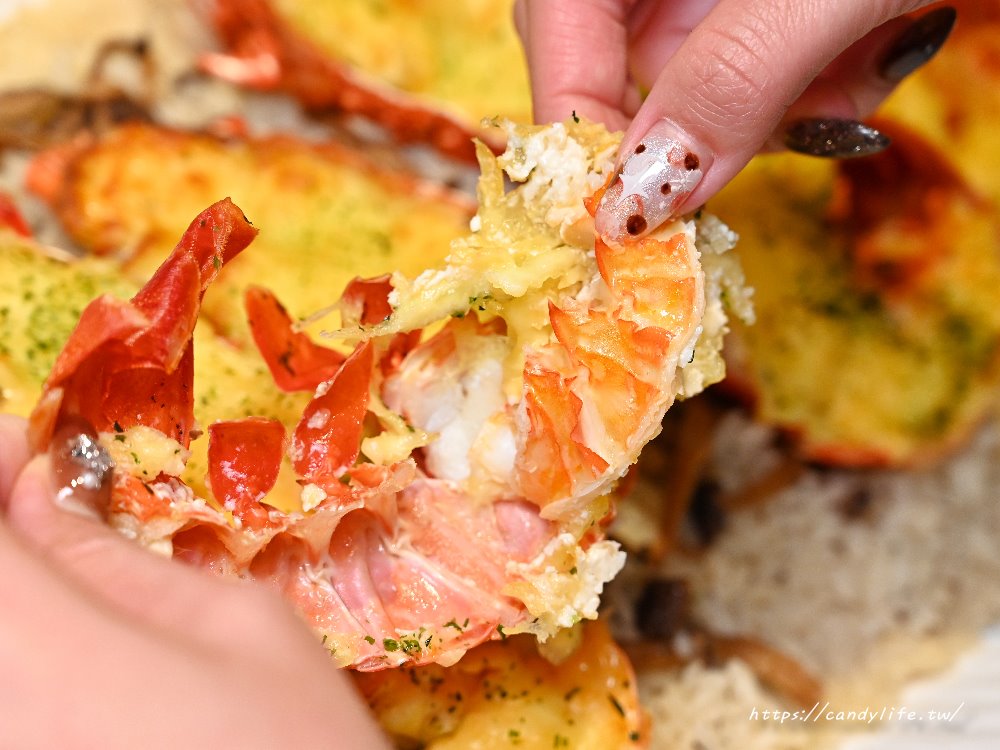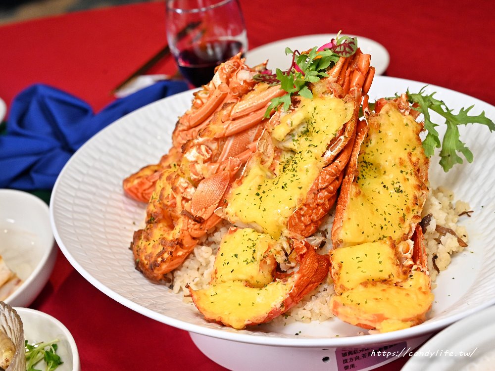 頂級雙龍蝦奢華登場,搭配奶香濃郁的蕈菇燉飯,堆疊出豐富層次,龍蝦覆上起司焗烤至表面金黃微酥,濃郁起司香氣撲鼻而來,一口咬下,龍蝦肉質彈牙緊實、鮮甜飽滿,與起司的鹹香完美交融