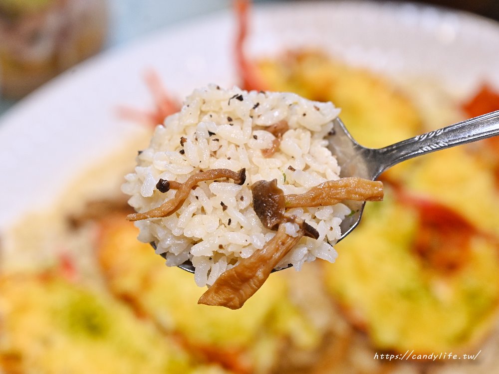 搭配底下蕈菇燉飯,絲滑奶香與蕈菇的鮮味,在口中綻放出奢華又溫潤的極致美味