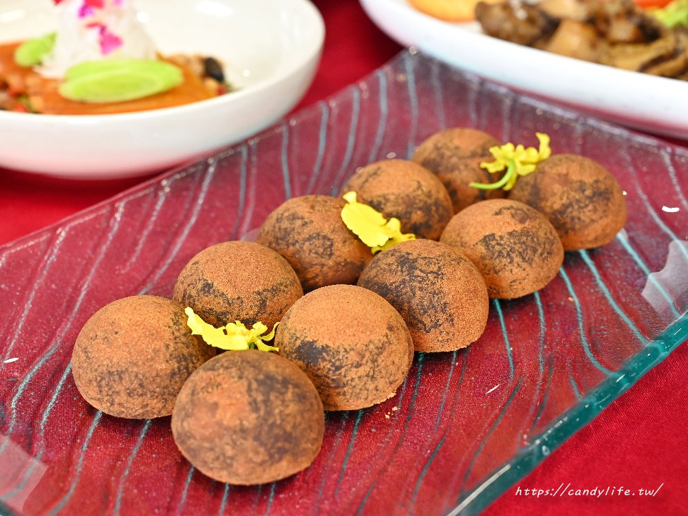 飯後甜點是花生黑糖Q麻糬,麻糬外Q內軟,外層裹上香濃黑糖粉,內餡搭配香甜花生,微甜不膩,是餐後不可或缺的療癒美食