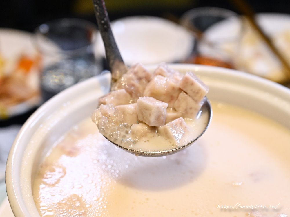 甜點除了經典的黑糖麻糬,還有香甜綿密的大甲芋頭西米露,慢火細熬的芋頭綿軟香濃,濃郁的芋香在口中化開,搭配熱騰騰、椰香四溢的西米露,滑順潤口,層次豐富,為整餐畫下完美的甜蜜句點